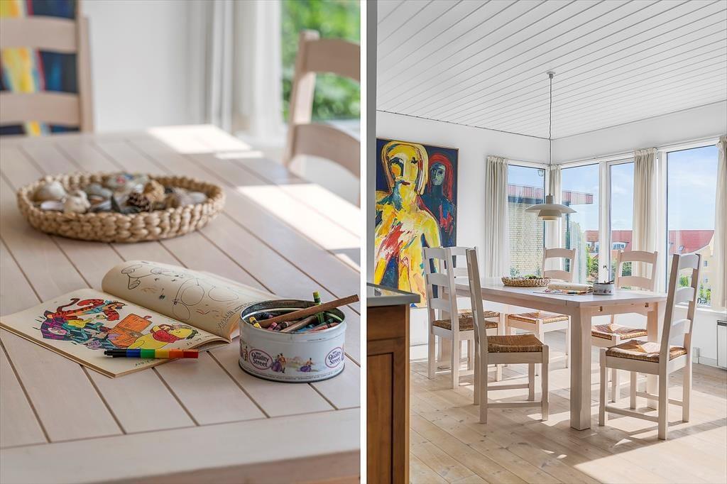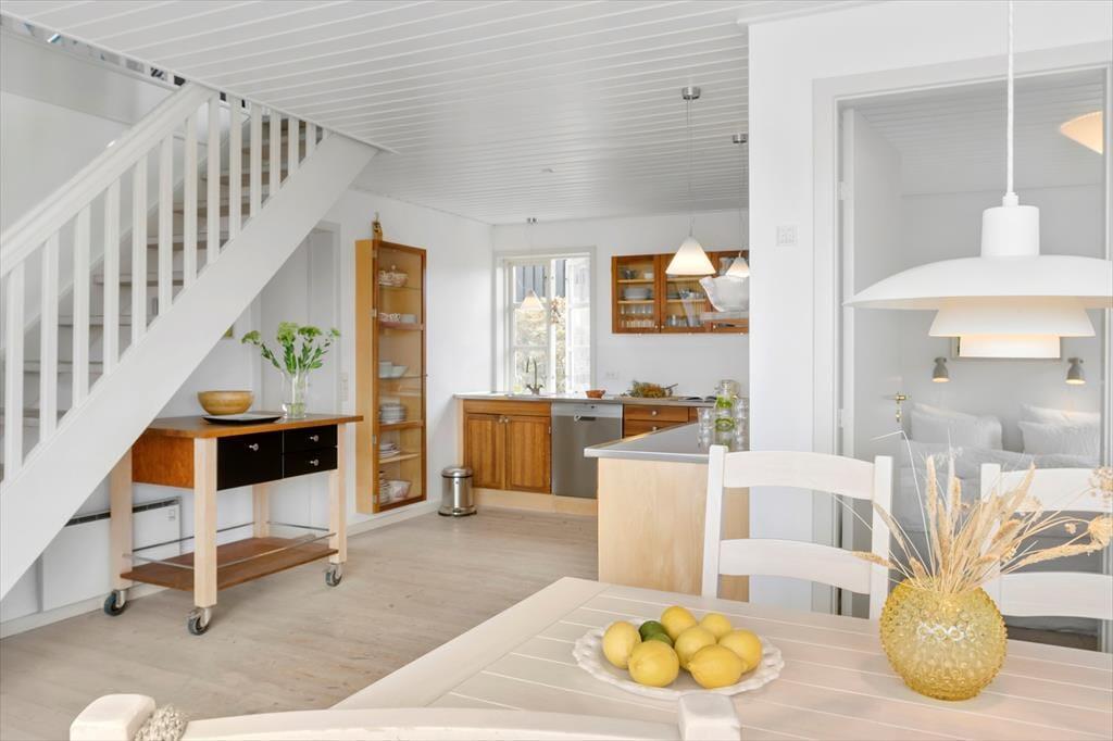 Den attraktive beliggenhed er bestemt ikke eneste kvalitet ved huset, for det er nemlig et rummeligt og særdeles charmerende eksemplar, der har ligget her på adressen siden 1905. Siden er det blevet flot renoveret med respekt for husets historie, så det er et stemningsfuldt hus, I kommer til at holde ferie i. Huset ligger højt i landskabet og har en planløsning i flere niveauer, og når I kommer helt til tops, har I en skøn udsigt fra førstesalens hyggelige stue. Til den ene side kan I nyde havudsigten, og til den anden kan I skue langt ud over byens tage og de grønne omgivelser. I stueplan har I også udsigt til røde hustage og grønne hybenbuske, når I kokkererer i det lækre køkken eller hygger jer ved spisebordet. Udover opholdsrum byder huset på to soveværelser og et badeværelse med badekar.