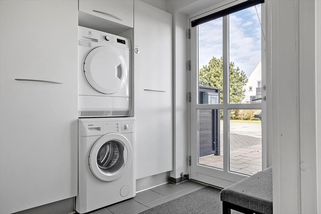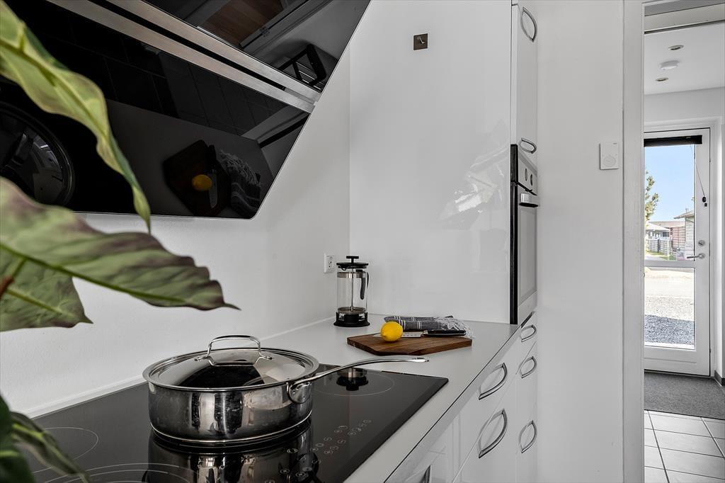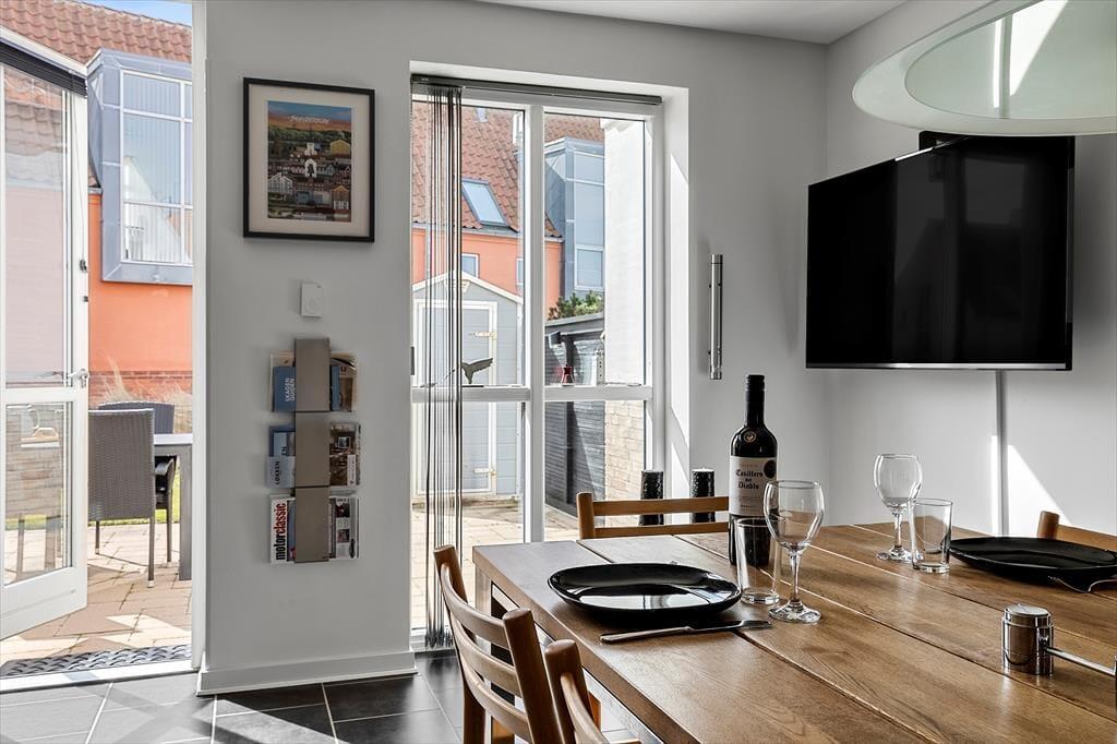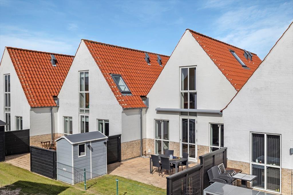 Ferieboligen ligger som del af et kønt kædehusbyggeri fra 2007. Inden døre er lysindfaldet godt, og akustiklofterne og den lyse farvesætning bidrager til den behagelige rumfornemmelse. I stueplan er opholdsrummet indrettet, så I hurtigt kan føle jer hjemme: Her er en komfortabel sofaafdeling, spisebord til seks personer og en åben køkkenafdeling med god plads til at kokkerere. En entré med vaskefaciliteter, et pænt badeværelse og et soveværelse hører også med til planløsningen, mens førstesalen byder på yderligere to soveværelser og et ekstra badeværelse. Alt i alt får I altså en super planløsning, der både egner sig til familieferien og hyggeturen med gode venner.