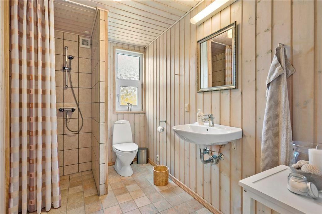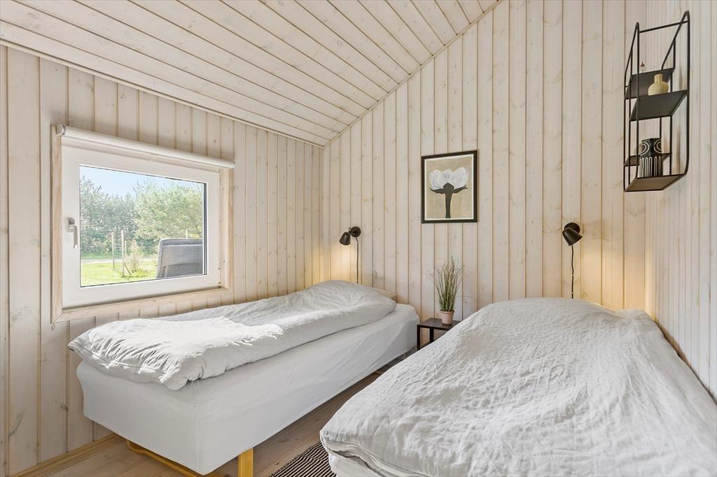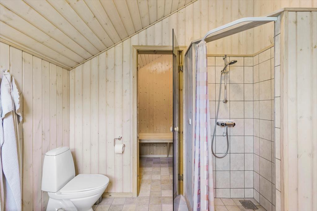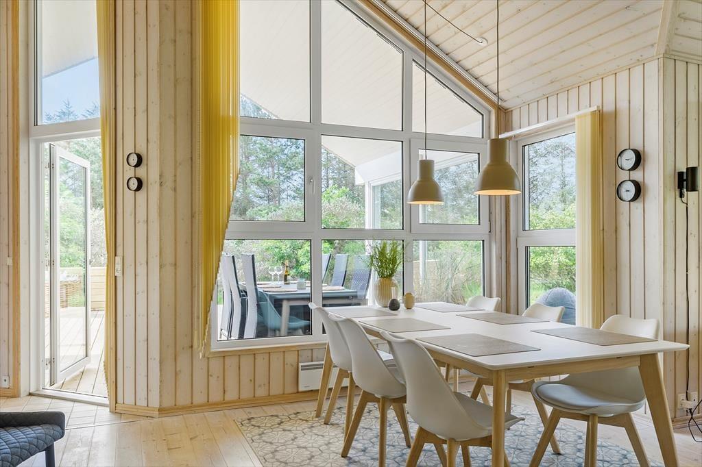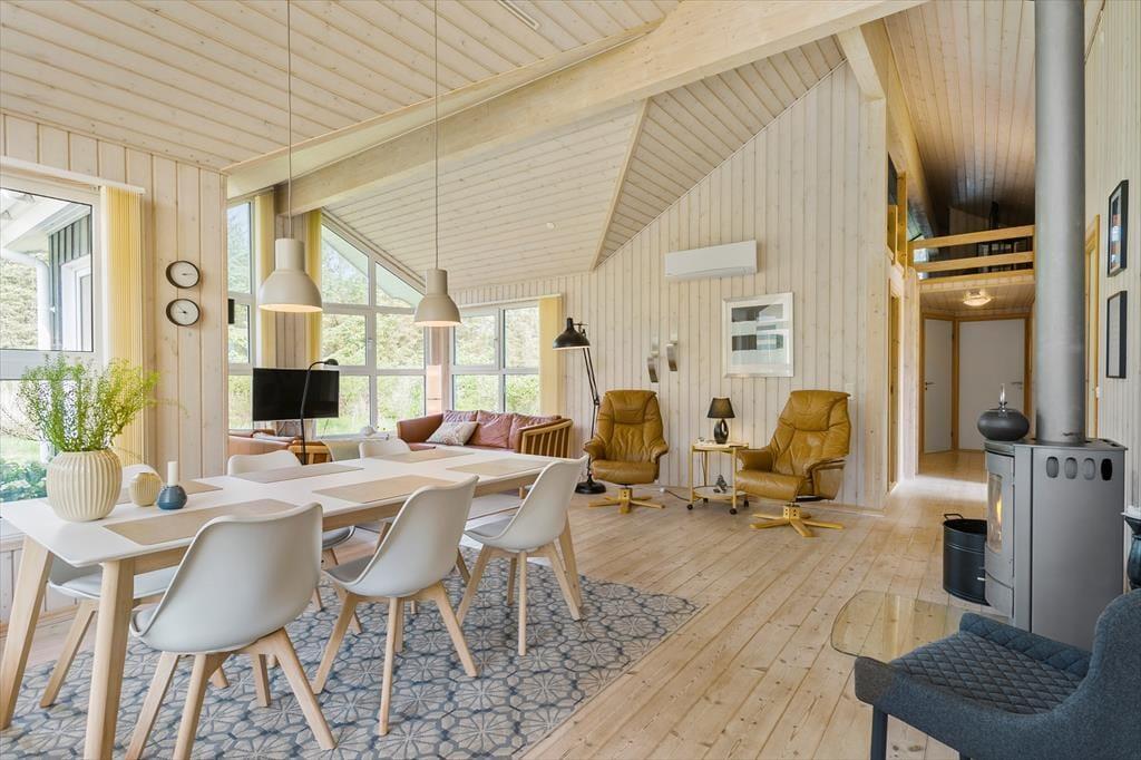 Med et hus på hele 111 m2 har I masser af plads til at hygge jer inden døre. De tre soveværelser ligger godt fordelt i samme afdeling som to badeværelser, hvoraf det største er udstyret med både spabad og sauna, så I kan afslutte dagen med lidt wellness inden sengetid. Sommerhusets sociale samlingspunkt er en stor og indbydende stue, der ligger i åben forbindelse med et veludstyret køkken. Atmosfæren er lys og let, for der er loft til kip, lyse trælister på væggene og høje vinduespartier, der inviterer solen indenfor og giver udsigt til den grønne grund. Desuden skal det nævnes, at katte ikke kan medbringes i sommerhuset, men der er mulighed for at tage en hund med på ferie.