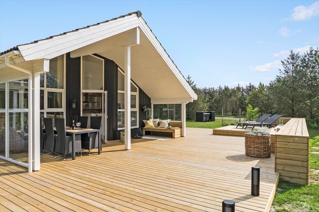 Dette velindrettede sommerhus har en gennemtænkt planløsning og er fuld af dejlige detaljer – inklusiv spabad og sauna på det ene badeværelse. På grunden kan I nyde tilværelsen på den ugenerede terrasse, og får I brug for en dukkert, kan I hurtigt spadsere ned til Løkken Strand.