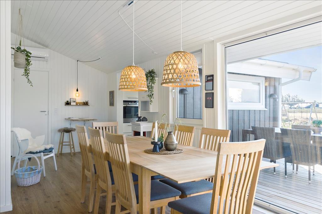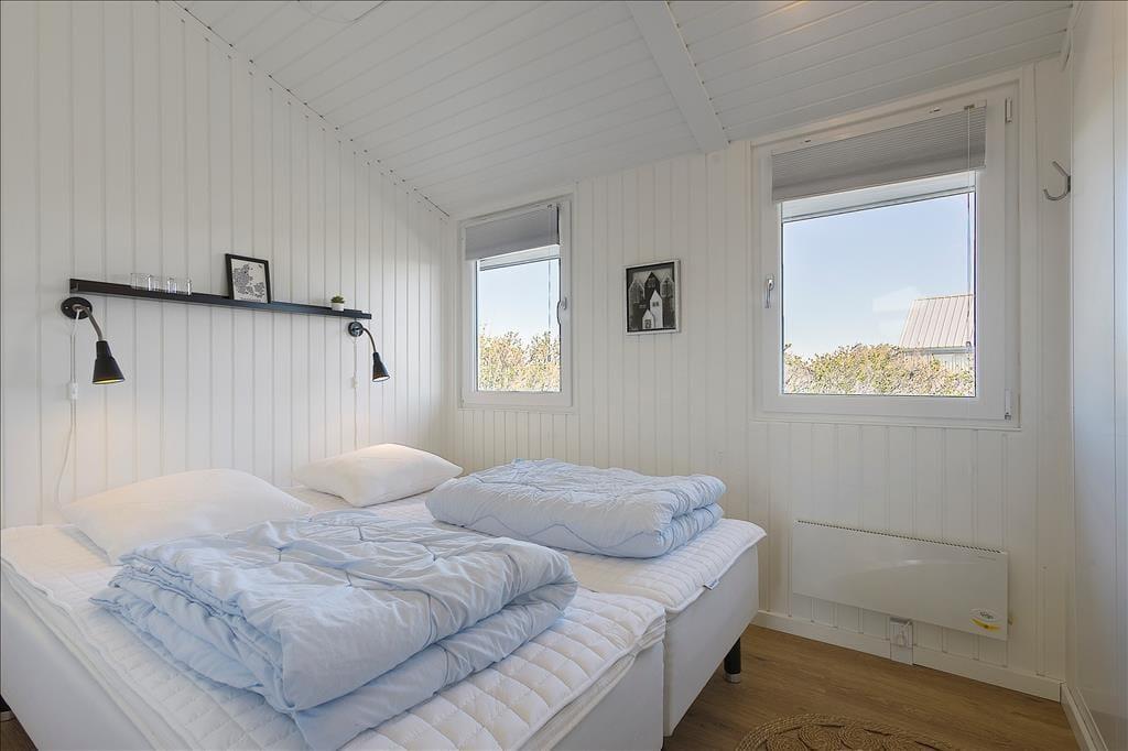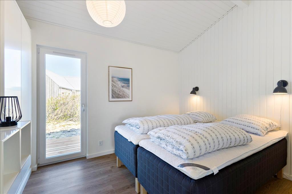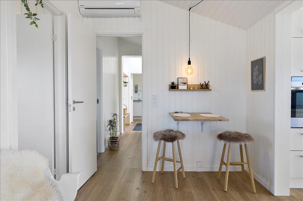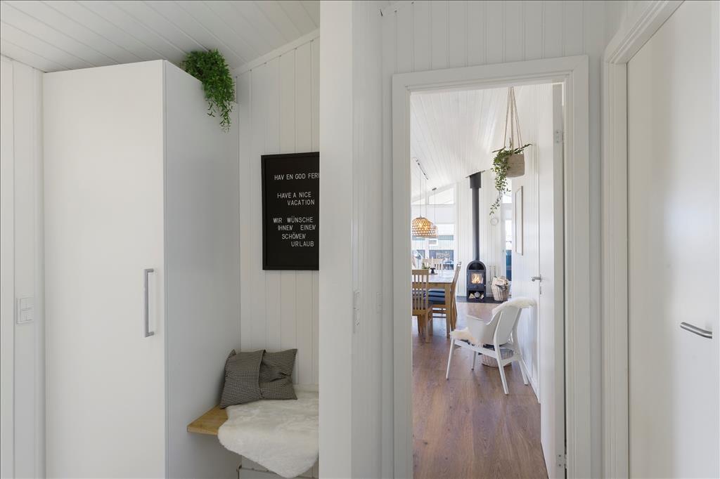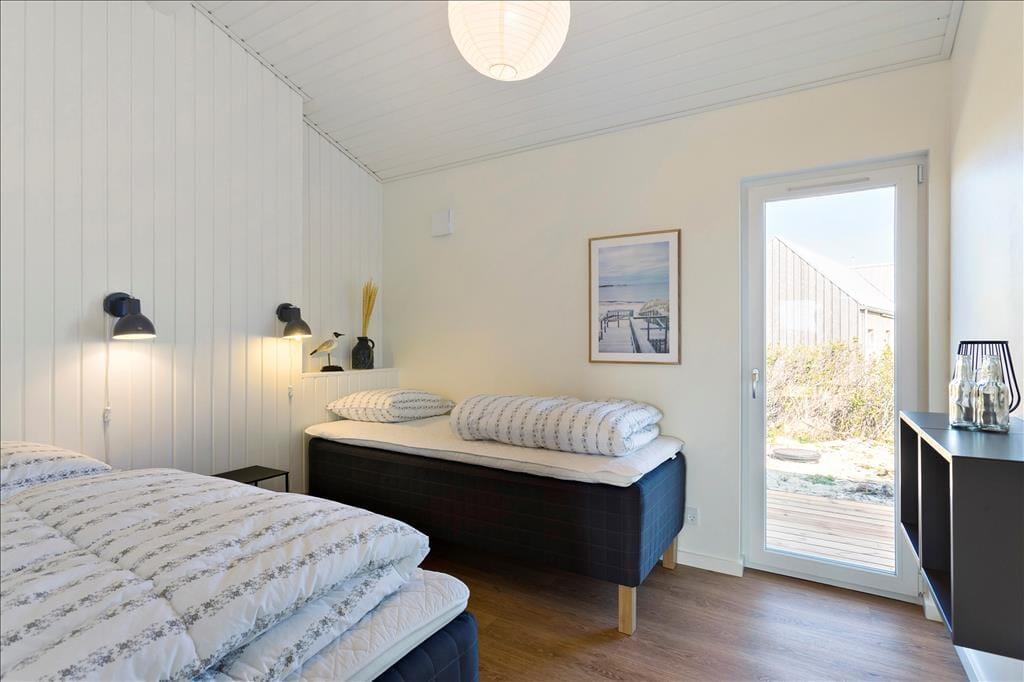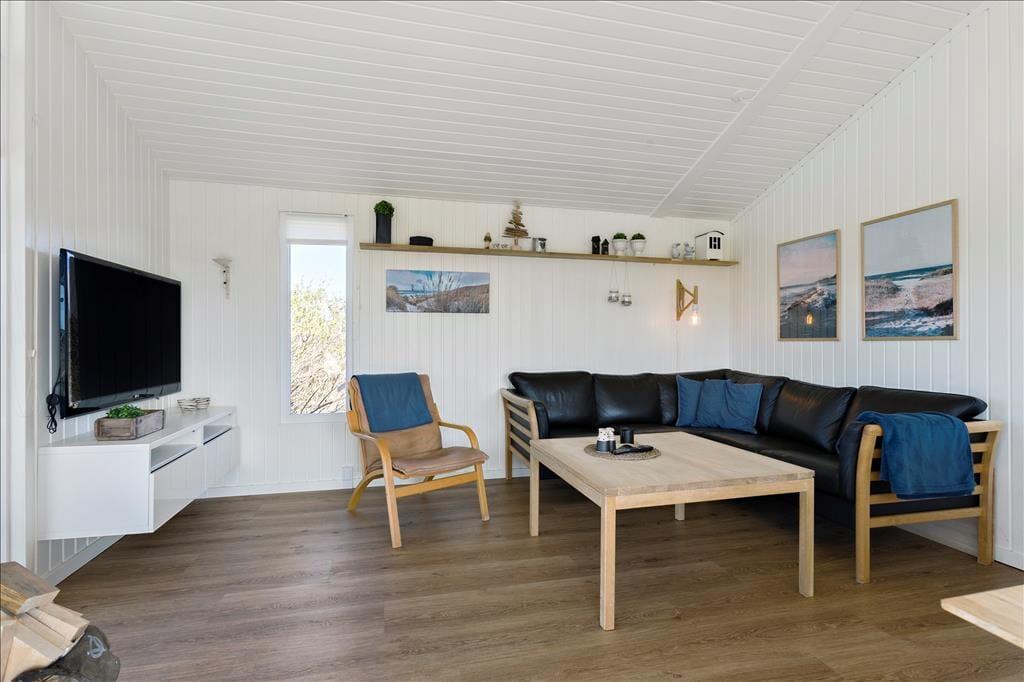 Sommerhuset er i 2021 blevet udvidet med en stor tilbygning, så det nu fungerer glimrende som ferieoase for hele familien – hvis ikke det er gode venner, I inviterer med på turen. Under alle omstændigheder kan I nemt samles otte personer, for planløsningen byder på fire soveværelser og to badeværelser, der endda er placeret i hver sit afsnit i huset. En dejlig opholdsstue med brændeovn og åben forbindelse til et flot køkken ligger i den ene ende af sommerhuset, og i den anden finder I et stort aktivitetsrum, hvor I kan hygge jer med at spille dart og bob eller flade ud foran fladskærmen. Der er mulighed for at medbringe egen spillekonsol, som sagtens kan tilsluttes fjernsynet.