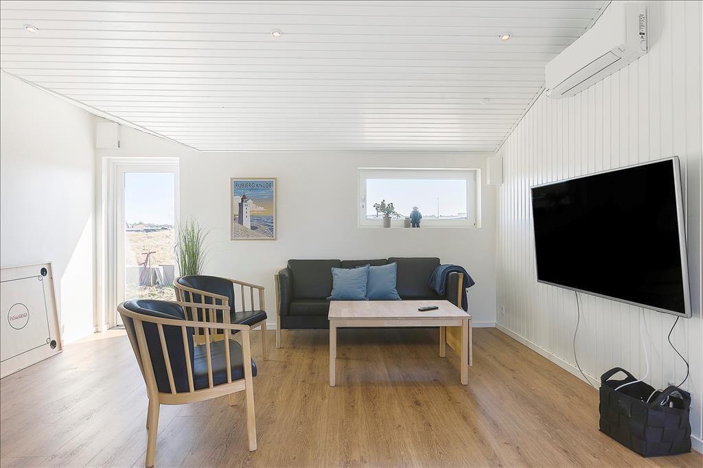 I kan se frem til en skøn ferie, når den foregår i dette flotte og nyrenoverede sommerhus. Både inde døre og ude på det fantastiske terrassemiljø er der masser af plads til at slappe af og hygge sig sammen, og hvis I får lyst til en dukkert eller gåtur langs Vesterhavet, har I kun 400 meter til Løkken Strand.