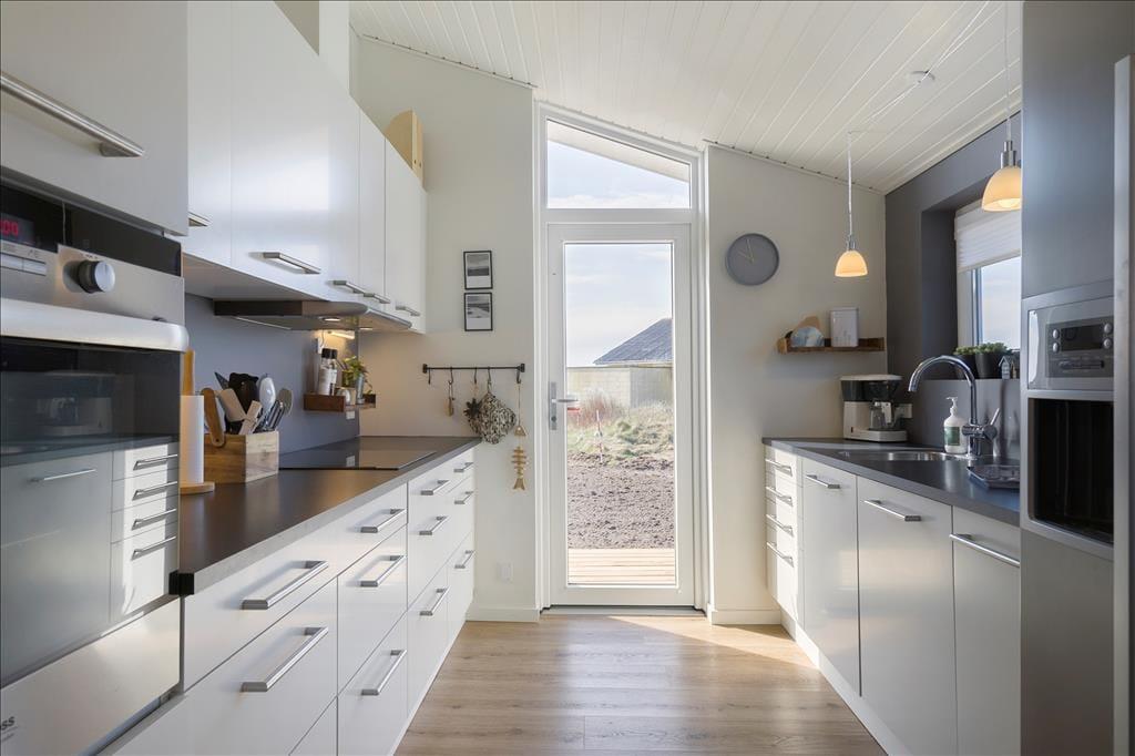 Sommerhuset er placeret på en lille, lukket stikvej, og herfra tager det blot få minutter at spadsere gennem det flotte kystlandskab og ned på den brede sandstrand. Løkkens karakteristiske hvide badehuse pryder den lokale kyststrækning, og det er tilladt at køre i bil helt ned på sandet, hvis I får lyst til at følge Jammerbugten og køre mod Rødhus. Vil I til Løkken, er der ingen grund til at finde bilnøglerne frem, for I kan nemlig spadsere de knap halvanden kilometer ind til bymidten, når I får lyst til en isvaffel, en shoppetur eller en kølig drink på en udendørs café.