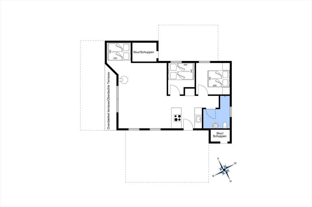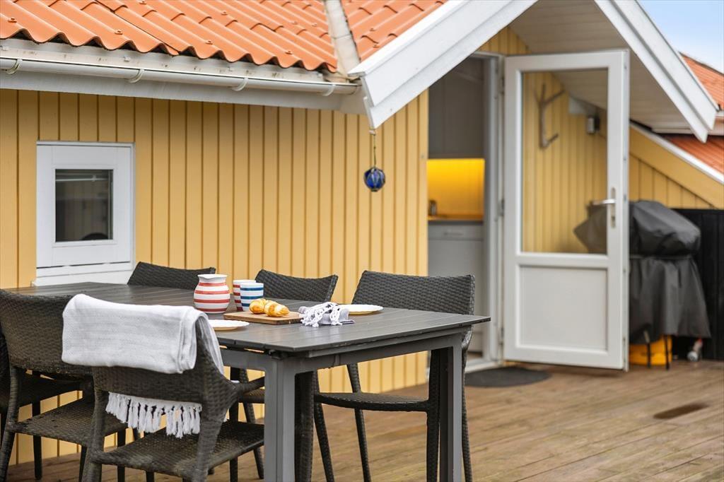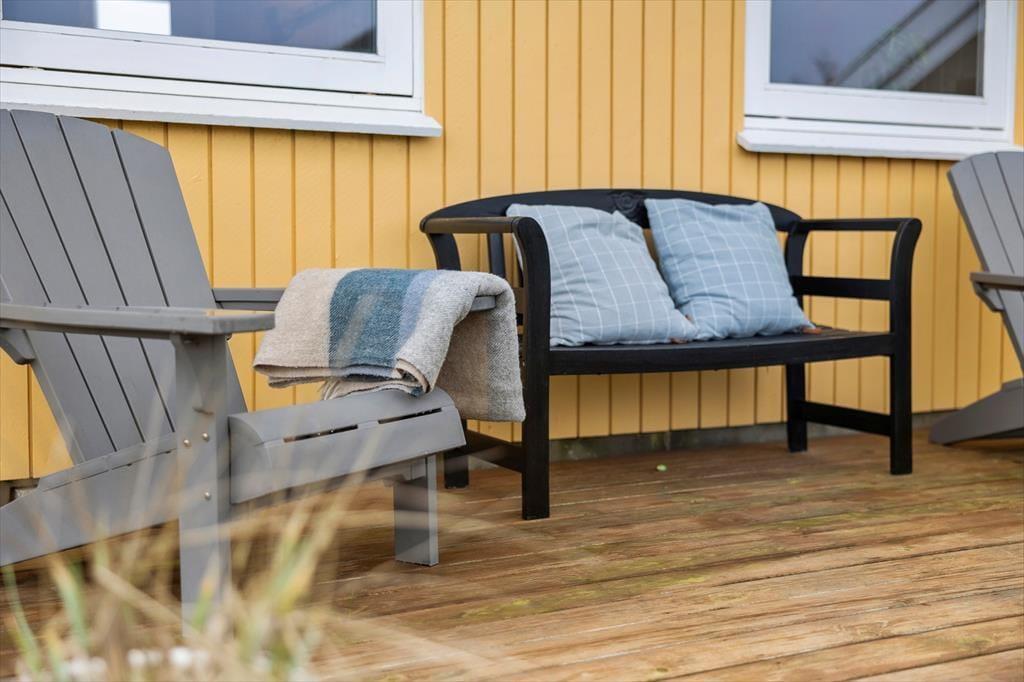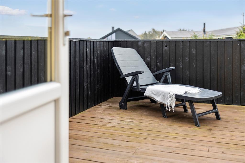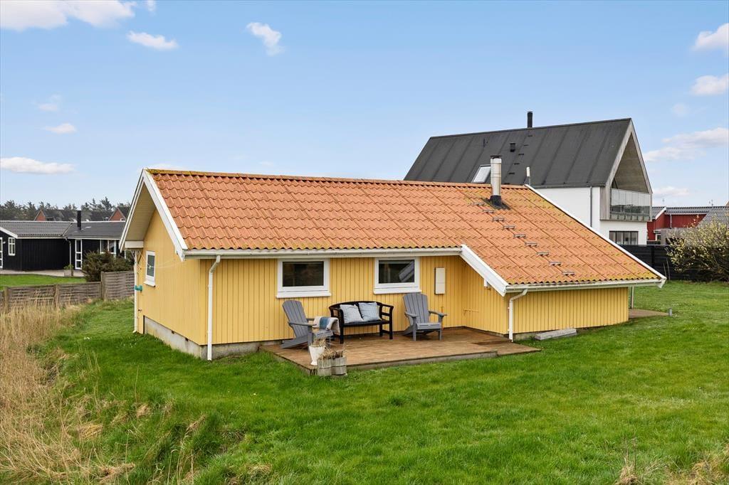Dette hus er perfekt til en afslappet ferie med sol på terrassen og leg i haven, da feriehuset ligger på en stor naturgrund med græsplæne, og har derfor masser af plads til, at børnene kan spille bold eller lege. Med udgang fra køkkenet ligger den dejlige store terrasse, hvor man kan sidde helt i fred og ro og spise eller nyde solen, og for enden af huset med udgang fra stuen, er der etableret en delvist overdækket terrasse, og skulle vejret være regnfuldt en dag, har man her muligheden for at sidde lidt i læ og nyde de lange sommeraftener.