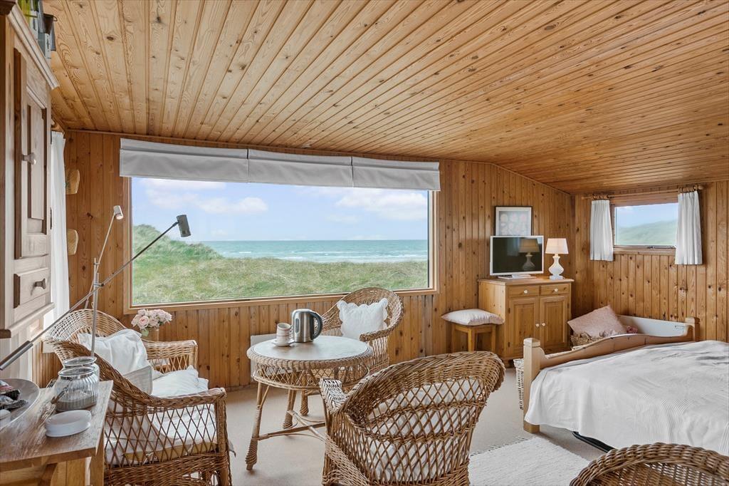 Findes der noget skønnere end at sidde med udsigt til vandet sammen med en af sine kære? Sådan kan du lige præcis tilbringe din kommende ferie, når den foregår her i dette charmerende sommerhus, der ligger skønt placeret i klitterne med vinduerne vendt mod Vesterhavet.