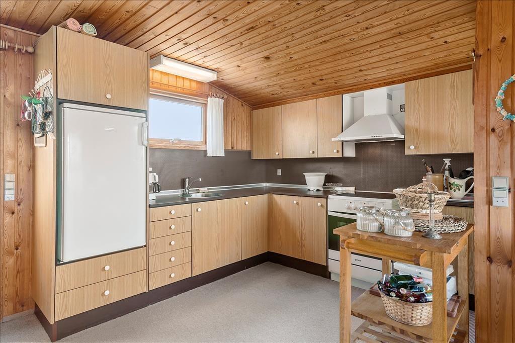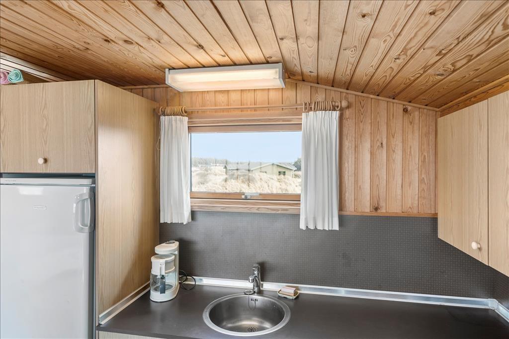 Det velholdte sommerhus er med sine 36 m2 ikke et af de største på markedet, men det er netop del af charmen, når I tilbringer dagene her ved kysten. Inde døre er der det, som hører sig til i et rigtigt sommerhus: Indretningen er enkel og charmerende, og den rare atmosfære indbyder til hyggelige læsestunder, kortspil, dybe samtaler og i det hele taget ferieliv i roligt tempo. Planløsningen byder på et badeværelse med brus, og derudover er soveværelse, stue og køkken samlet i ét åbent opholdsrum. Vinduerne inviterer dagslyset ind fra alle verdenshjørner og giver udsigt til de smukke omgivelser – og allerbedst er udsigten mod vest, for her kan I skue ud over Vesterhavets åbne vand.