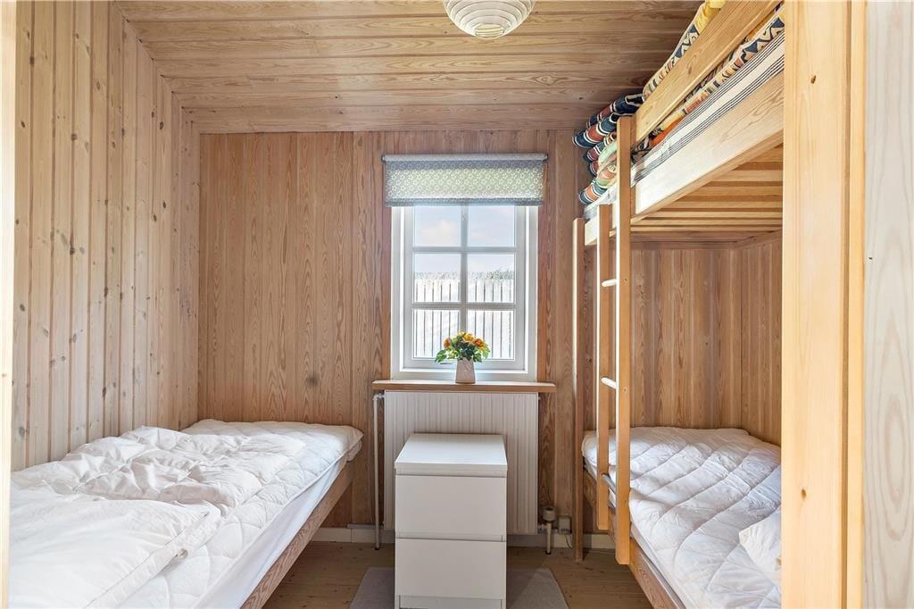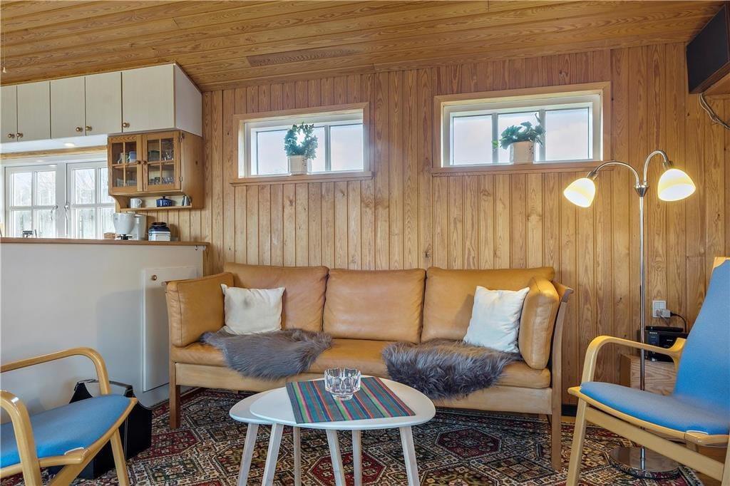 Inden døre har I 54 m2 at gøre godt med, så sommerhuset er altså ikke et af de største på markedet. Men hvem har også brug for mange kvadratmeter, når rammerne er så charmerende, og I under alle omstændigheder gerne vil bruge en stor del af tiden sammen? I den ene ende af sommerhuset ligger to soveværelser, et vaskerum, et toilet og en separat brusekabine, mens en dejlig stue med integreret køkken udgør den anden halvdel. Med trælister på væggene, loft til kip og sprossevinduer emmer huset af vaskeægte sommerhusatmosfære, og møblementet er med til at understrege den hyggelige fornemmelse.