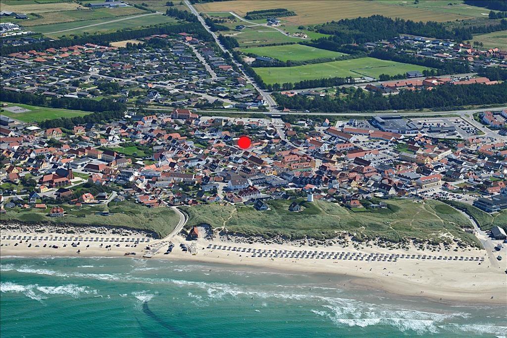 Med så central en adresse kan de daglige indkøb hurtigt klares, og I har særdeles kort afstand til byens spisesteder, hvis I hellere vil have maden serveret. Løkken har en hyggelig bymidte med kønne huse, spændende butikker og en rar, afslappet atmosfære, og året rundt bliver der afholdt spændende arrangementer for både store og små. I al slags vejr er det herligt at bo så tæt på Vesterhavet og den dejlige Løkken Strand, som er kendt for sit fine sand, sin lange mole og de karakteristiske hvide badehuse. Har I medbragt fiskegrej, kan I prøve at få en fisk på krogen fra molen, og hvis det er badetøj og håndklæder, I har taget med, kan I glæde jer til at springe i bølgerne