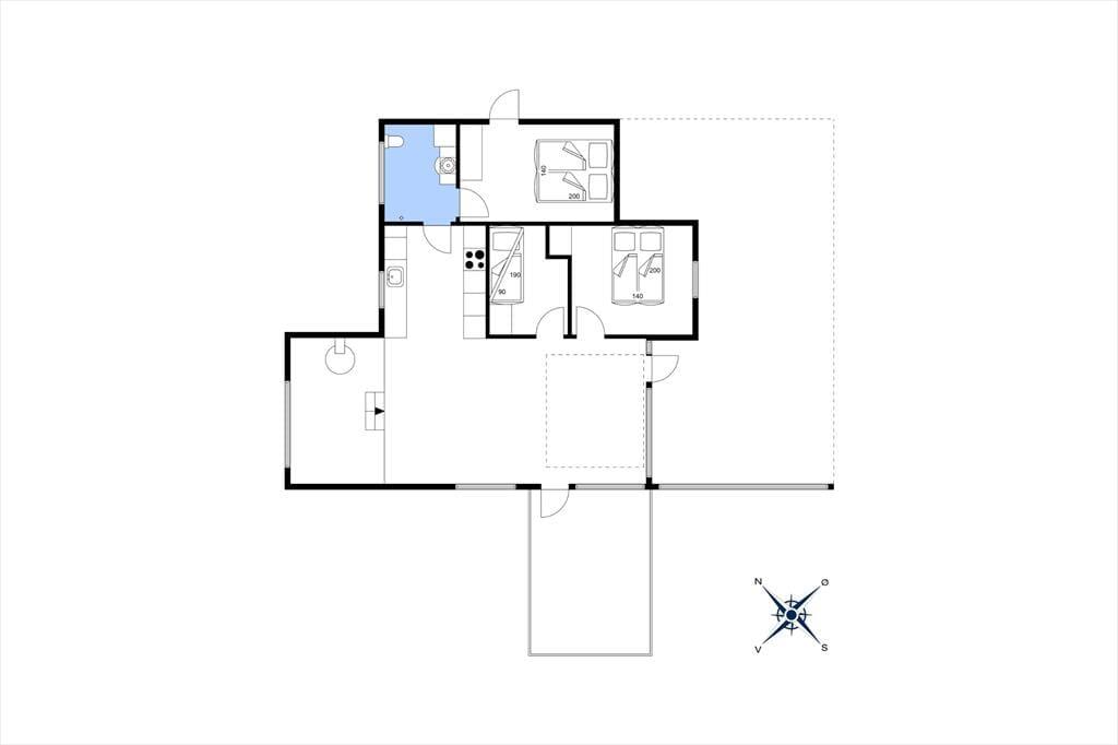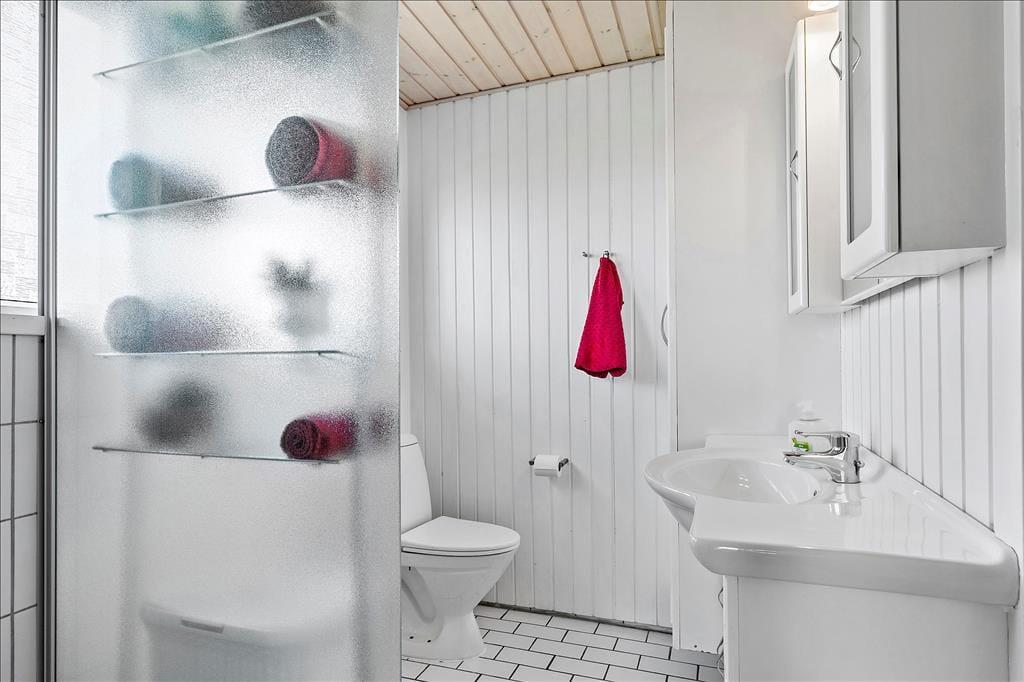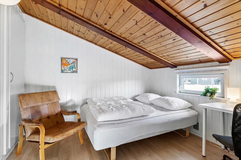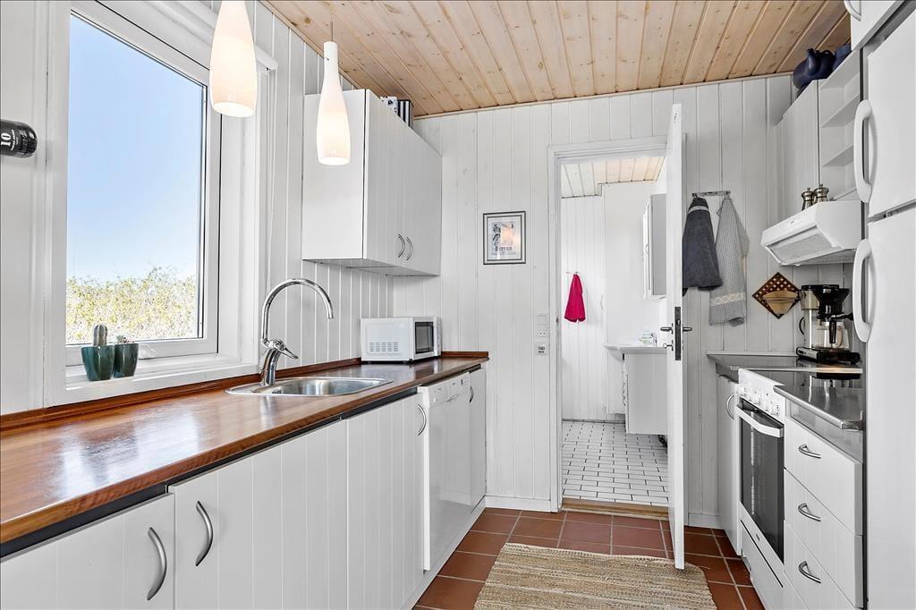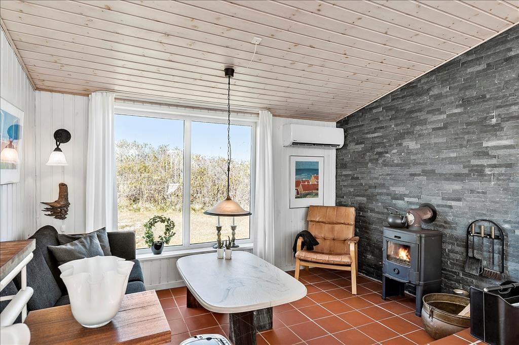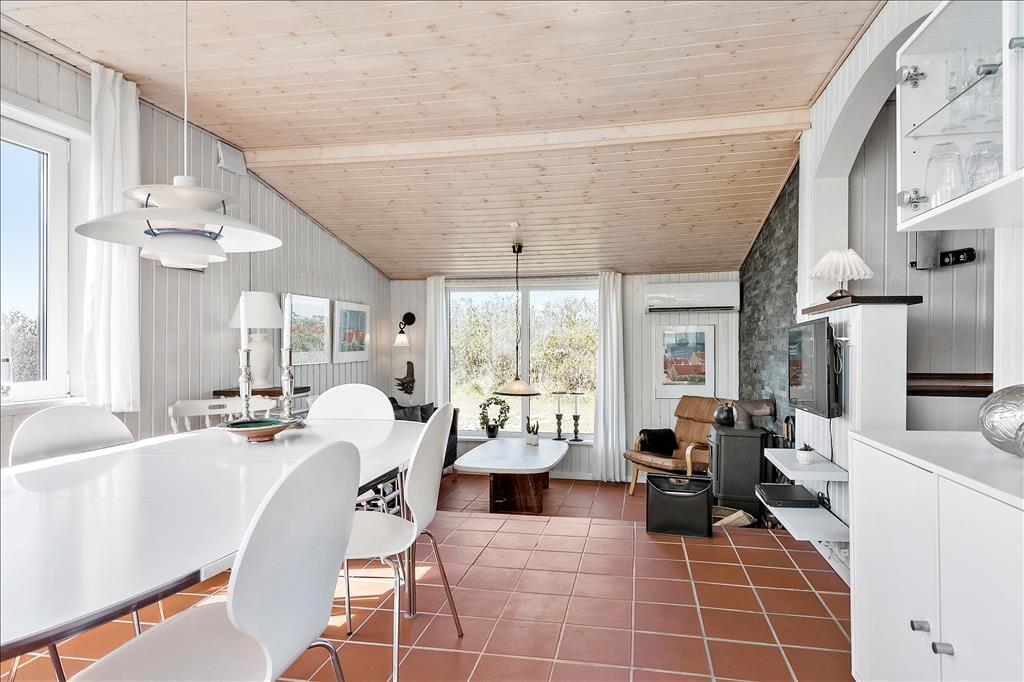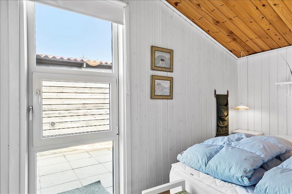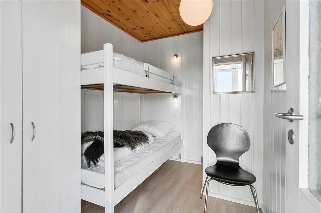 Med opførelsesåret 1956 kan man vist roligt kalde det for et ældre sommerhus, men gennem årene er det blevet passet og plejet, så det fremstår pænt og velholdt. Inden døre kan seks feriegæster finde sig godt til rette – blandt andet i opholdsafdelingen, der består af en niveau opdelt stue og et velfungerende køkken. I stuen står en brændeovn, og mod syd sørger et stort vinduesparti for, at der bliver lukket ekstra meget sollys ind i løbet af dagen. Sommerhusets badeværelse er lyst, enkelt og funktionelt, og endelig byder huset på tre værelser, der er udstyret med henholdsvis dobbeltsenge og en køjeseng.