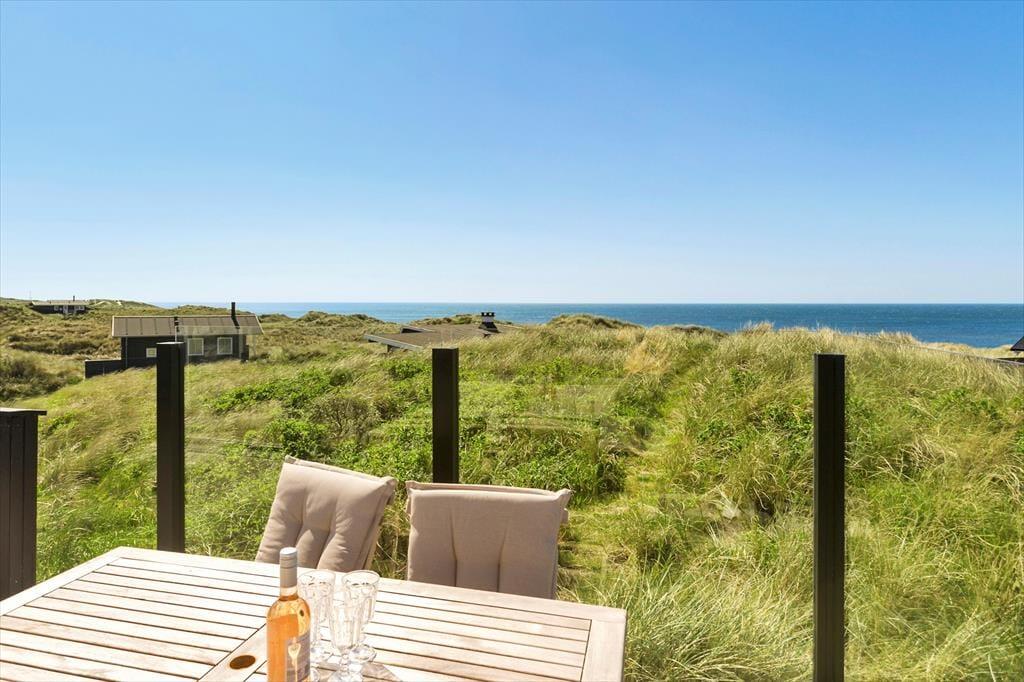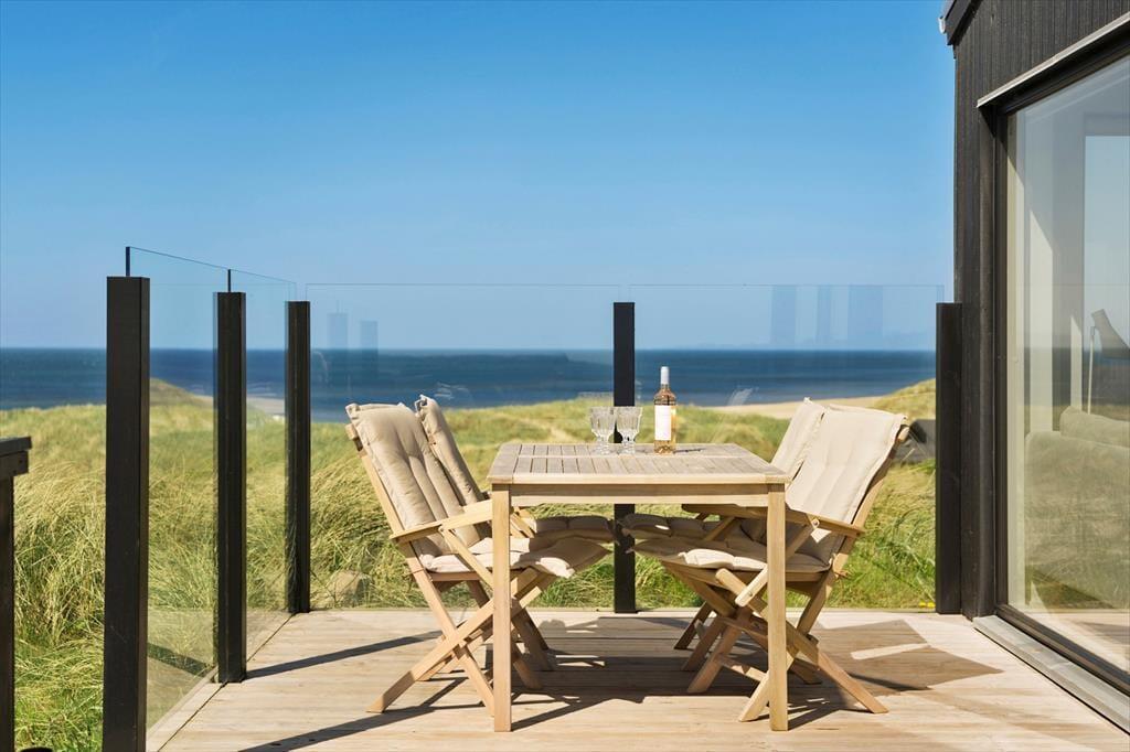 En ferie her giver jer rig mulighed for at koble helt af i naturskønne og rolige rammer. Huset ligger ugeneret og de sidste meter op til huset skal gøres til fods, når bilen er parkeret på den private p-plads, der hører til huset. Terrassemiljøet breder sig rundt om huset, så I kan sætte jer lige der, hvor solforholdene er bedst. Et lavt hegn skærmer terrassen af, og takket være glasafskærmningen mod havet har I stadig den fantastiske udsigt, uanset hvor I kigger hen.
