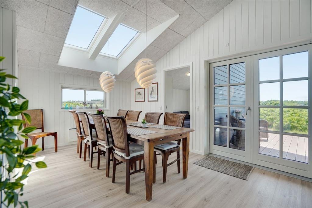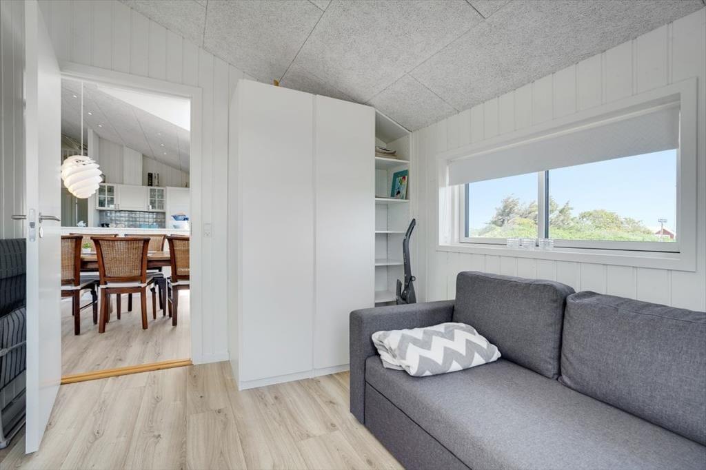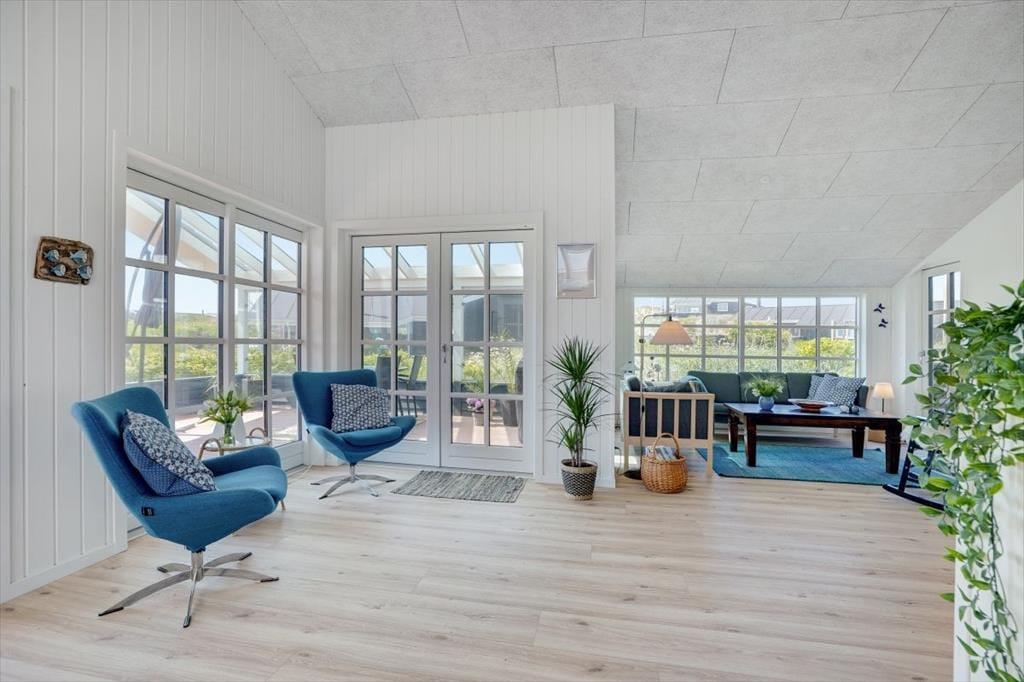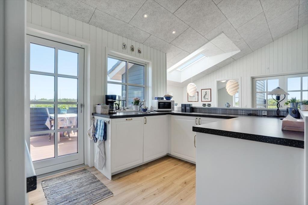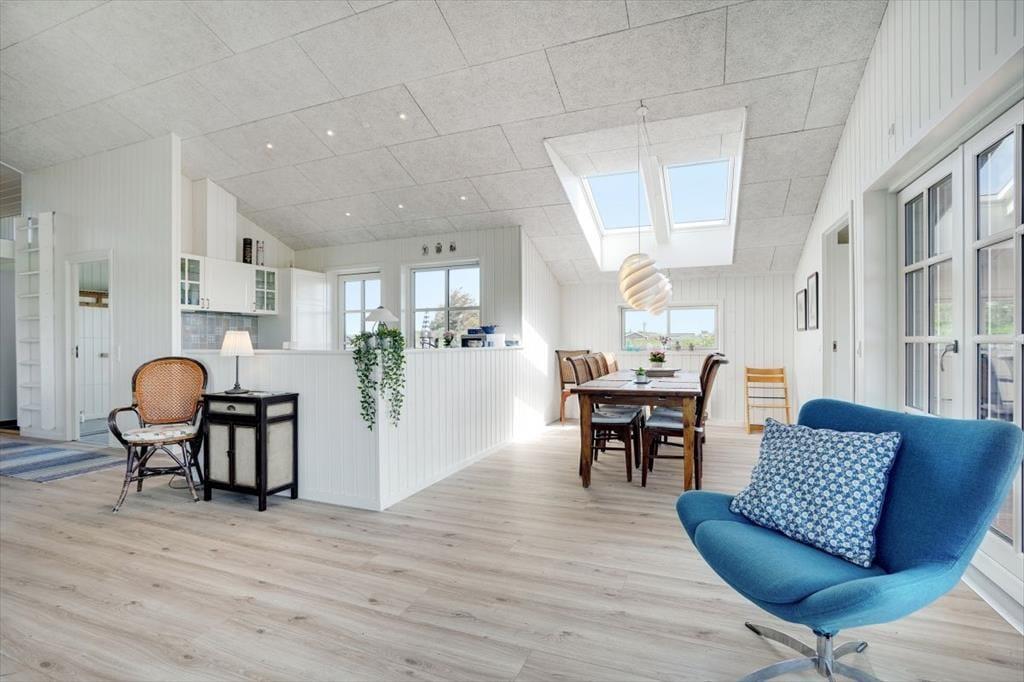 Denne lyse og rummelige feriebolig med plads til otte personer ligger dejligt i det naturskønne sommerhuslandskab lige syd for Løkken. Fra sommerhuset har I kort gåafstand til badebyens midte, og den hvide sandstrand og Vesterhavet er sågar endnu tættere på.