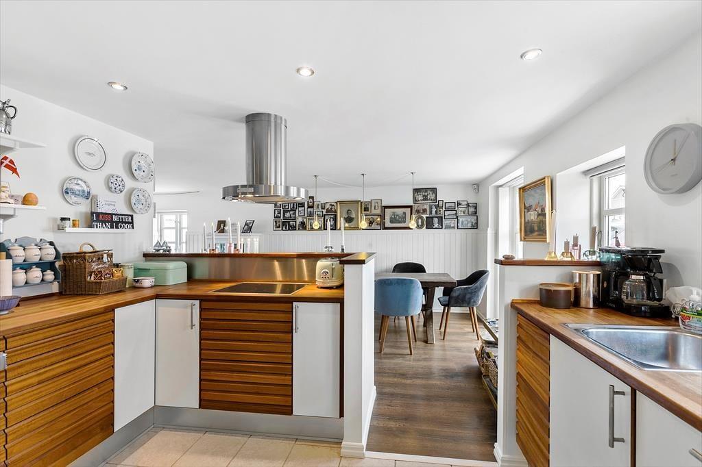 Sommerhuset byder på 128 m2 fordelt på to plan som opvarmes med fjernvarme, og dertil kommer annekset på 26 m2, så alt i alt har I god plads inden døre. Det er et klassisk byhus, der har stået her på den lille gade i cirka et århundrede, og den romantiske indretning med moderne møblement og charmerende nipsgenstande er med til at skabe den helt rette feriestemning i de lyse og indbydende rum. Stueplan byder på et badeværelse med bruseniche og spabad foruden et dejligt opholdsrum med køkken og stue i åben forbindelse. En stor del af ferien kan sagtens gå med at nyde livet her – hvis I altså ikke er ude for at udforske Løkken og omegn. Nattesøvnen kan foregå på førstesalen, der byder på to soveværelser og et ekstra badeværelse, og I kan også sove komfortabelt i anneksets to pæne soveværelser.
