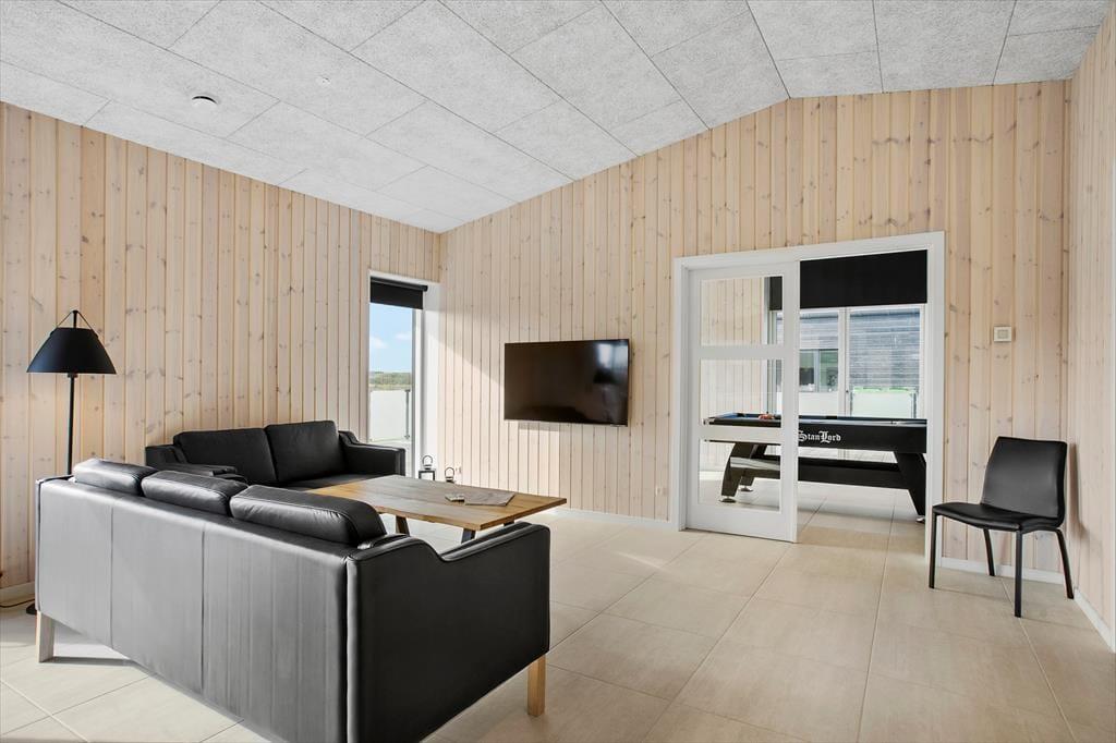 Atmosfæren er særdeles indbydende inden døre i huset, som med sine 147 m2 nemt kan rumme otte personer. Der er tre soveværelser med dobbeltseng og mulighed for at rede op til to på den dobbelte sovesofa i aktivitetsrummet – når I altså ikke hygger jer med at spille pool eller blive underholdt af fladskærmen. I det tilstødende opholdsrum er der også fladskærms-tv med Chromecast foruden sofaarrangement, spisebord og et lækkert køkken med alt det nødvendige for at lave smagfulde måltider. Badeværelser er der to af, hvoraf det ene er med sauna, som er en herlig tilføjelse, hvis I trænger til at slappe fuldstændigt af i løbet af ferien.