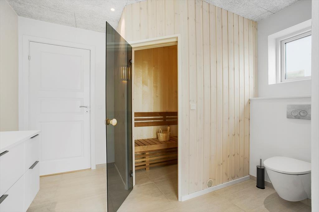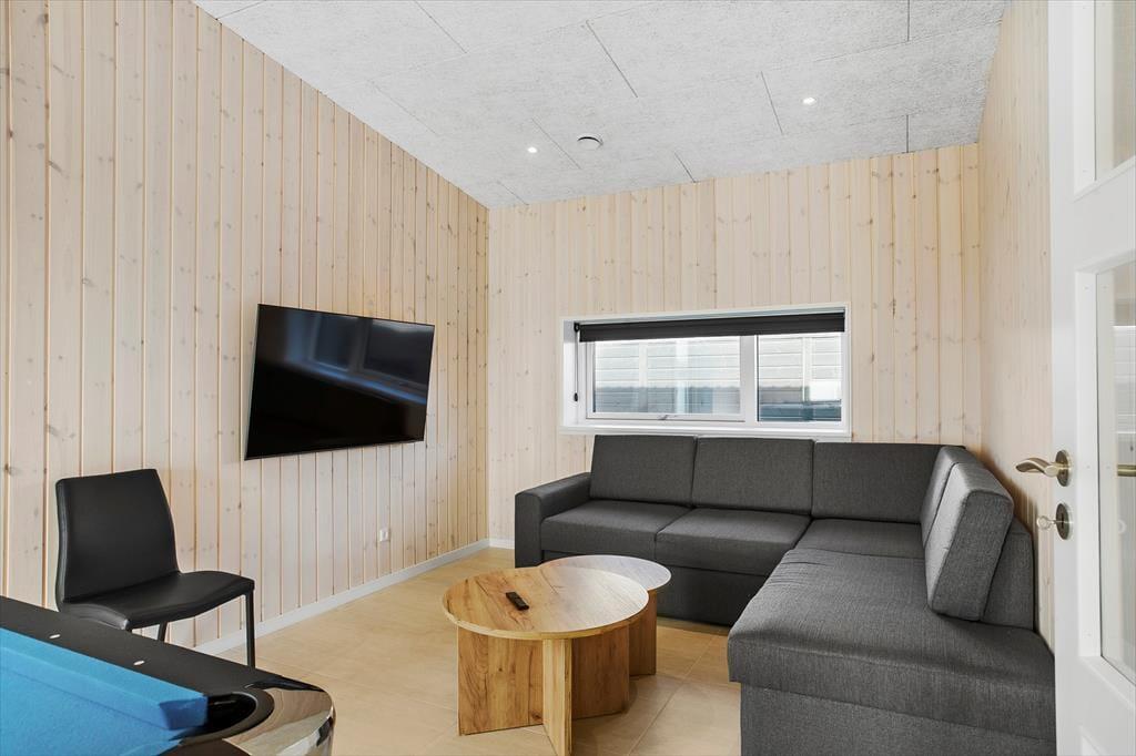 Dette store sommerhus fra 2022 er indrettet med sauna på det ene badeværelse, et aktivitetsrum med poolbord og et lækkert terrassemiljø med vildmarksbad. Som endnu et plus ligger det på Augustvej tæt på Løkkens bymidte såvel som Vesterhavet, så alt i alt er det et fremragende sted at tilbringe feriedagene.