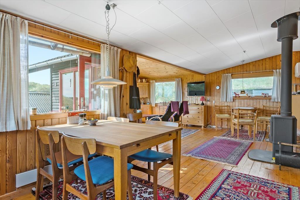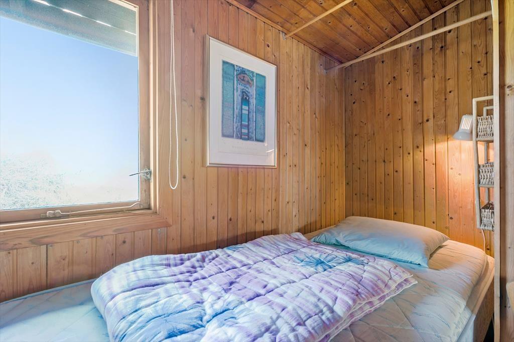 Sommerhuset, der er opført i 1965 og måler 54 m2, er indbegrebet af et klassisk dansk feriehus: Der er loft til kip, trævægge og hyggeligt møblement inden døre, og en brændeovn står klar til at sprede varme og god stemning. Gennem vinduerne kan I se lige ud på de marehalmsklædte klitter og det naturskønne sommerhusområde – ja, selv fra badeværelset kan I se lige ud i det grønne. Der er en dør imellem toilettet og baderummet, hvor I for øvrigt finder en vaskemaskine, mens køkkenet er integreret med stuen. I selve sommerhuset er der to soveværelser, og et anneks byder på ekstra sengepladser, så det er muligt at være op til seks personer, hvis det er ønsket.