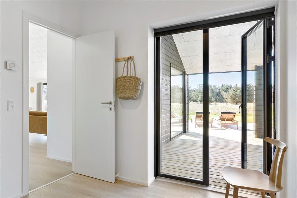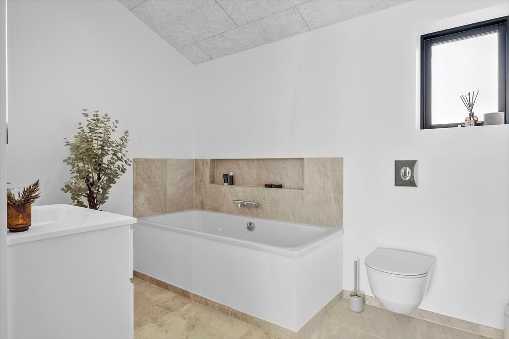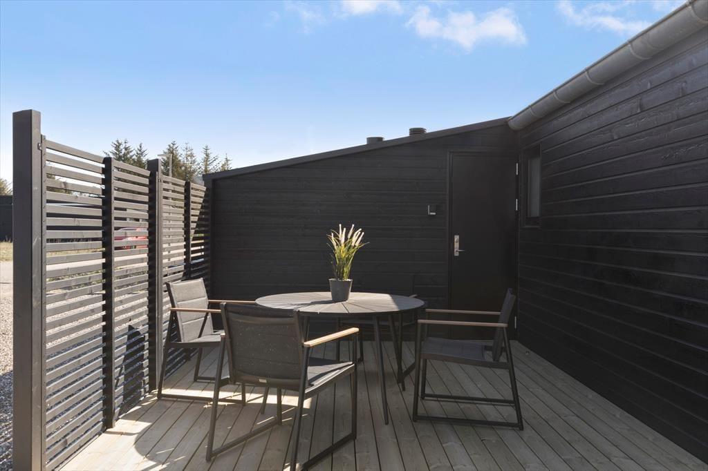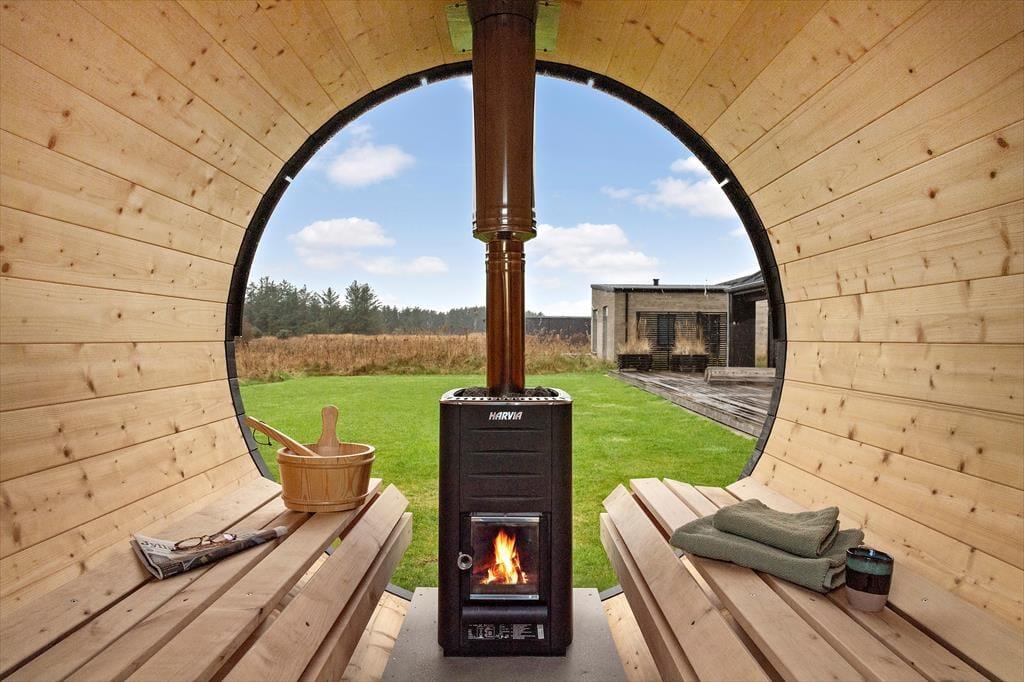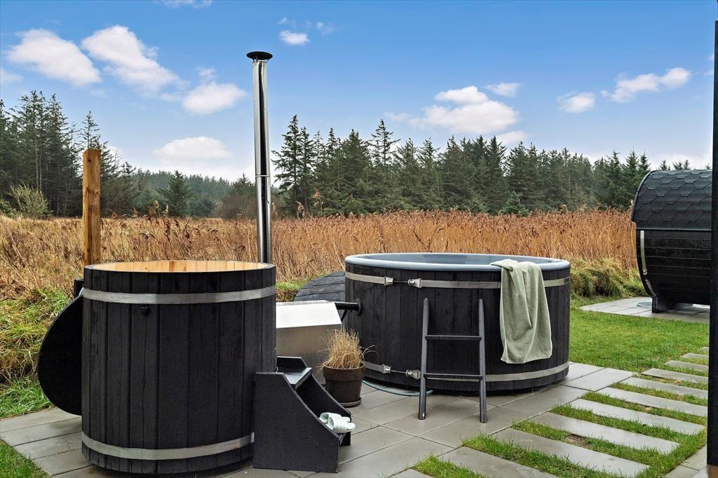 Rundt om sommerhuset er der flere terrasser at vælge imellem. Mod både øst og vest finder I overdækkede arealer, så her kan I finde skygge i løbet af dagen og ly for duggen, hvis I gerne vil blive siddende ude til langt ud på aftenen. Vil I dase i solen, er den store, sydvendte terrasse helt perfekt til formålet, og de smukke naturomgivelser er blot med til at gøre udelivet endnu skønnere. Udover de dejlige terrasser kan I også nyde godt af faciliteter som vildmarksbad, koldvandsbad, sauna og udebruser, der gør jeres udendørs ophold endnu mere luksuriøst.