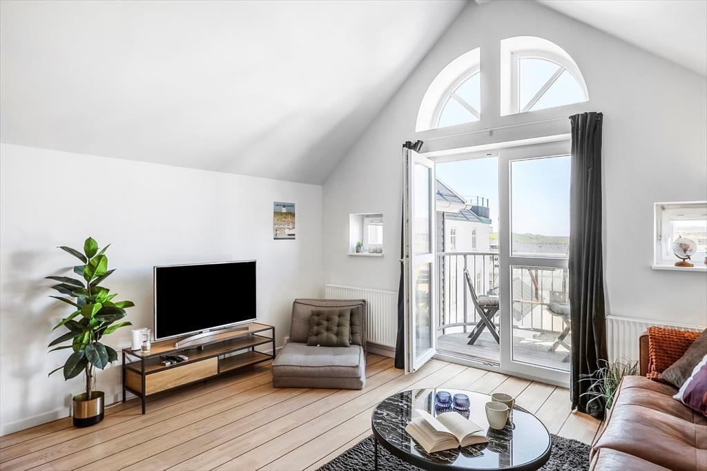 I kan straks begynde at glæde jer til at holde ferie i denne flotte lejlighed, der ligger lige midt i Løkken og bare 200 meter fra stranden. Med sin stilfulde indretning i to plan og havudsigt fra balkonen er lejligheden perfekt til en parferie – eller til familien, der gerne vil nyde nogle afslappende dage i den gamle badeby.