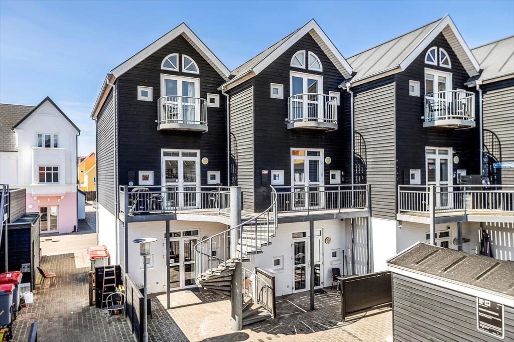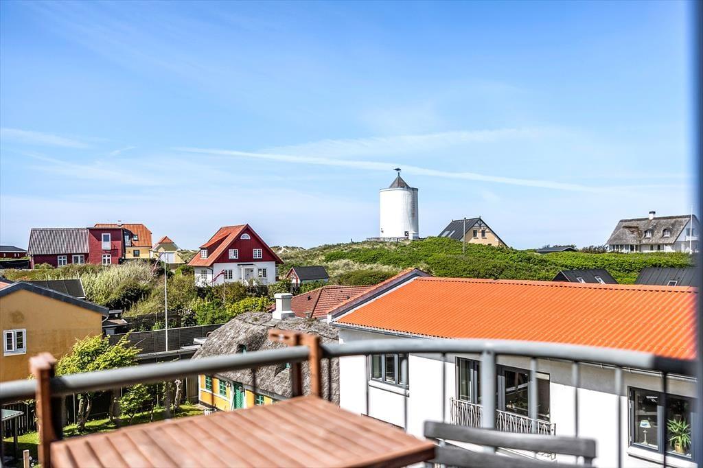 Med to balkoner på øvre etage og en balkon og et lidt større terrasseareal på nedre etage har I rig mulighed for at trække frisk luft og slikke sol her på adressen. Fra stuens balkon kan I sågar se havet bag klitterne og nyde synet af det fine, gamle vandtårn, der pryder bybilledet. I har for øvrigt en p-plads med til lejligheden.