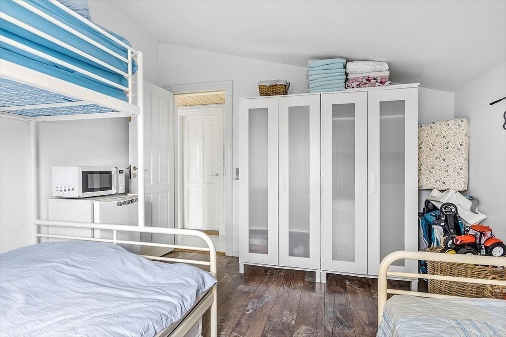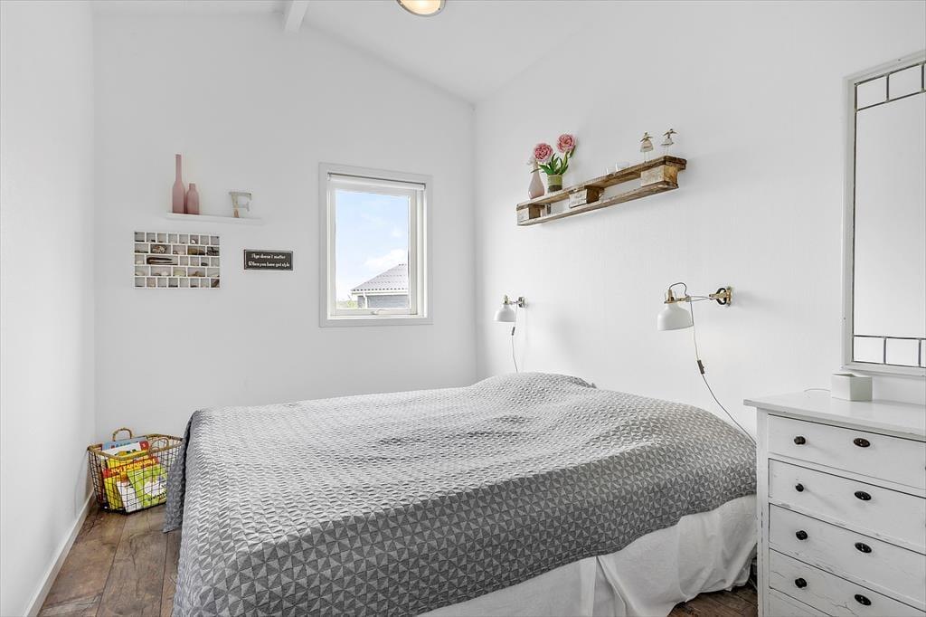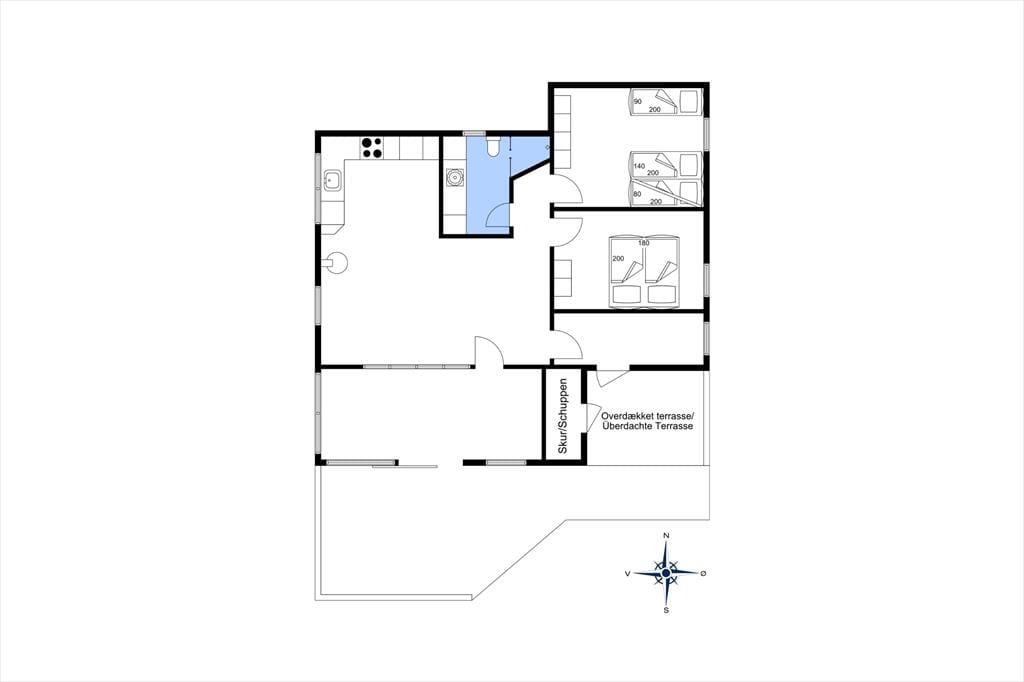 Da det 80 m2 store sommerhus blev renoveret, var der fokus på at modernisere og lysne rummene, men samtidig bevare den gode atmosfære, så huset er en optimal base for de, der trænger til at slappe af. Rummene indbyder til at tage den med ro, uanset om det er vejr til at tænde op i brændeovnen og flade ud i stuens sofa, eller om I bruger det meste af ferien i den tilstødende udestue. Hvis I kan lide at lave mad, har I en god arbejdsstation i det åbne køkken, og så er der både bruser og vaskemaskine på badeværelset. Soveværelser er der to af og I har mulighed for at være op til seks personer i huset. Ydermere er der babyseng og babybadekar i huset.