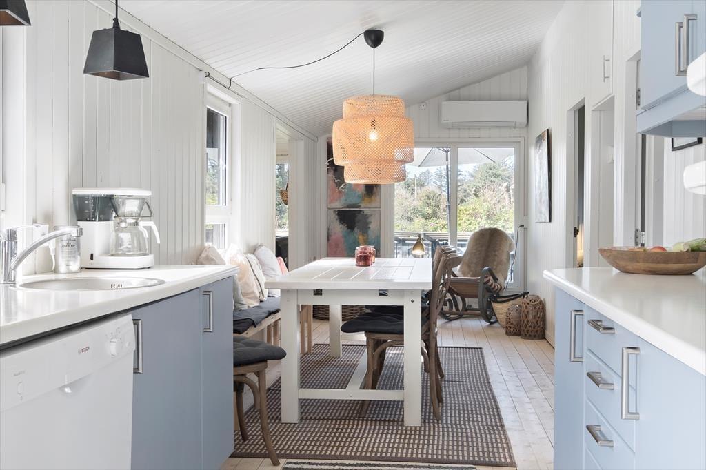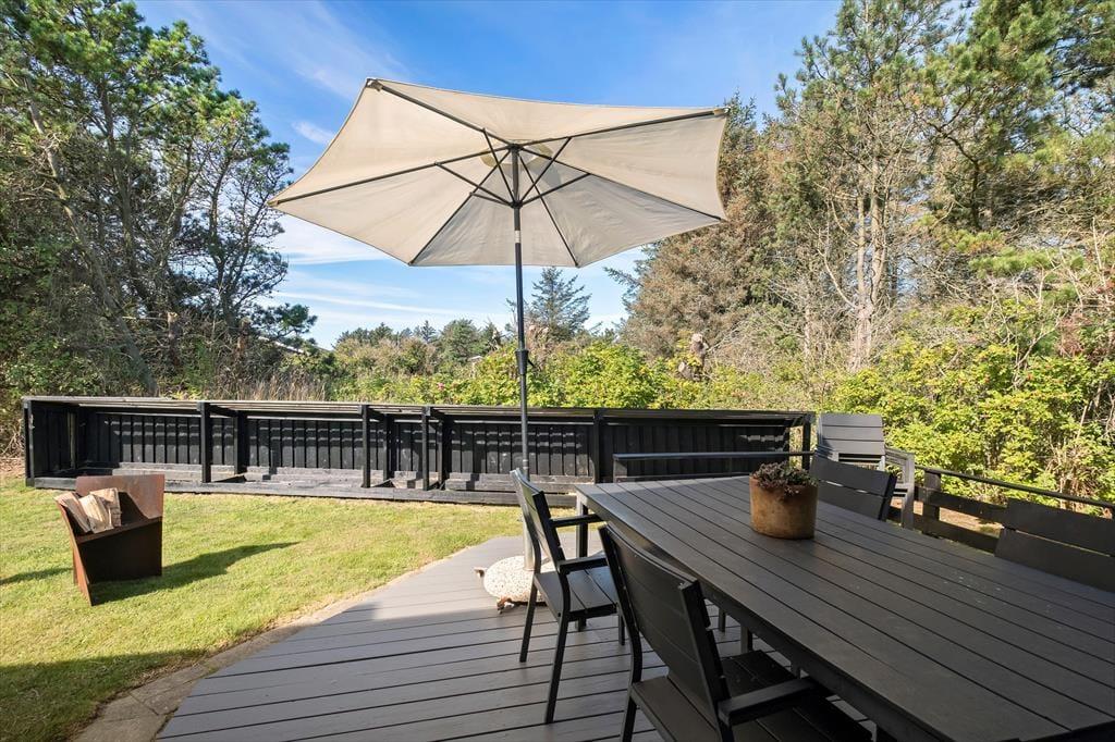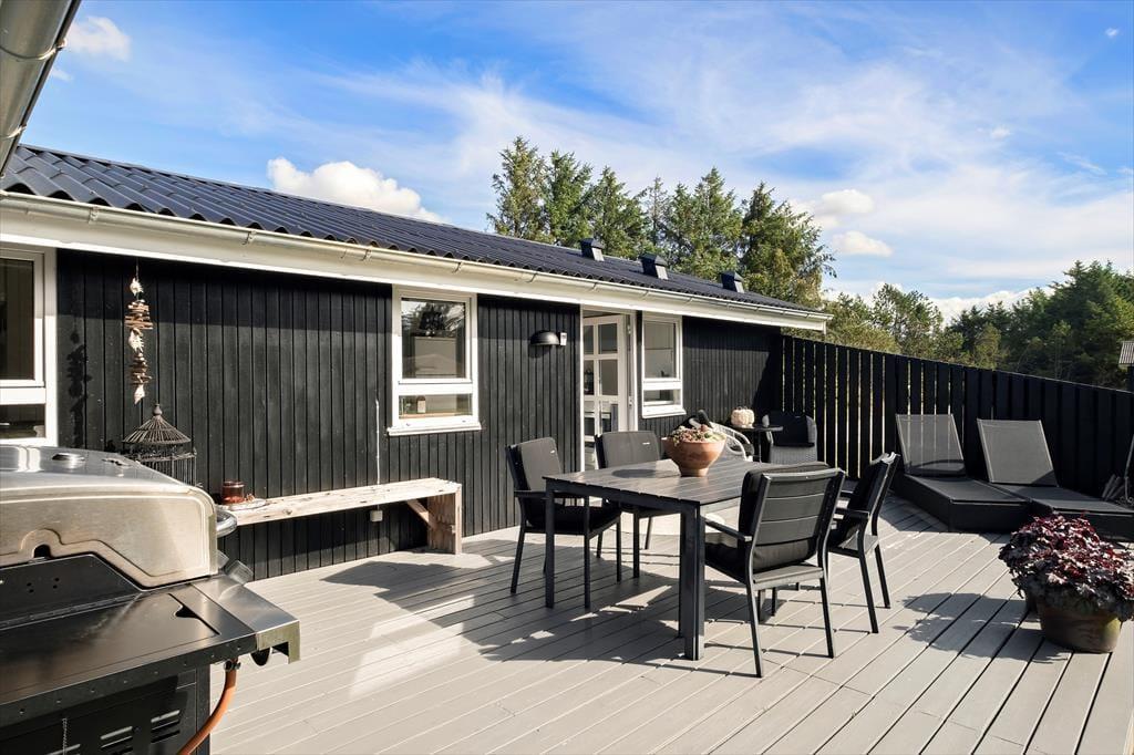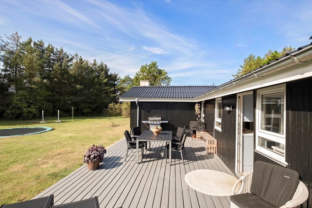 På solrige og sommerlige feriedage er det nærliggende at rykke ud på de skønne terrasser, der ligger i forlængelse af huset. Den ene terrasse er delvist overdækket og den anden helt åben, og hvis ikke I vil sidde her i havestolene, har I masser af plads til at slænge jer på græsplænen på den 2543 m2 store grund. Til børnene er der en trampolin, men mon ikke de også gerne vil hurtigt ned på stranden for at bygge sandslotte eller lege i bølgerne.