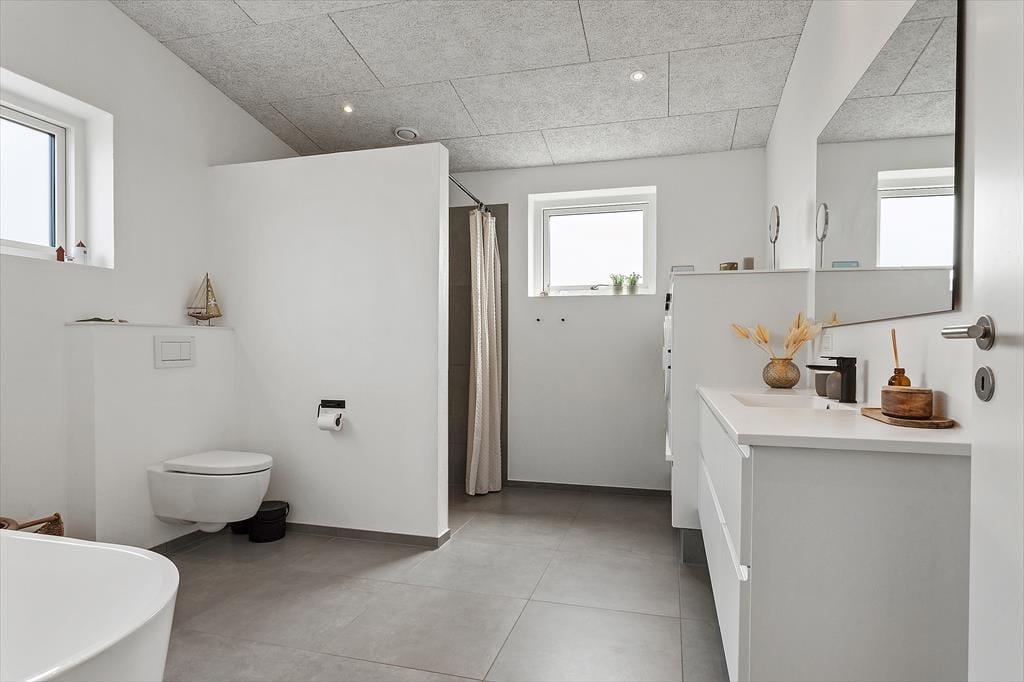 Her på Havkatten 10 bor I i et nyopført, lukket sommerhusområde tæt på Løkken by, så hvis I får lyst til en stor isvaffel eller frokost på en fortovscafé, er det muligt at gå eller cykle til bymidten. Området er roligt og familievenligt, og I har nemt ved at komme ud i naturen, hvis I vil løbe en frisk morgentur – eller måske bare strække benene lidt, inden I slår jer ned på terrassen. I har nem adgang til Løkken Golfklub, og stranden venter omtrent en kilometer væk, så ferien kan nemt fyldes med strandspil, sandslotte og dukkerter i Vesterhavet.