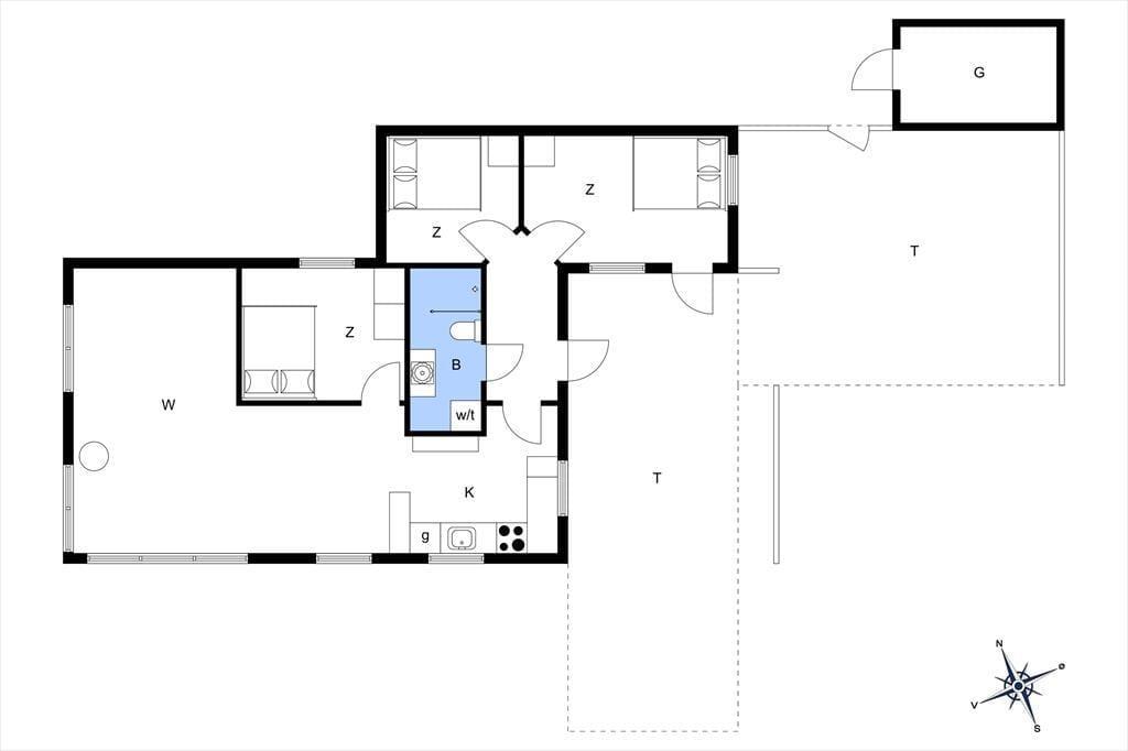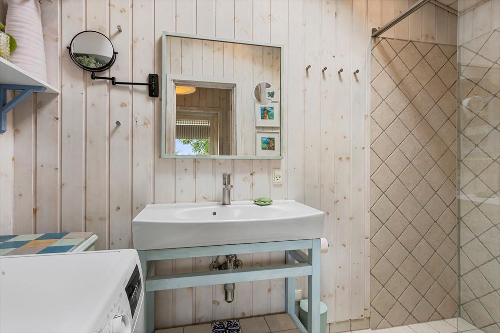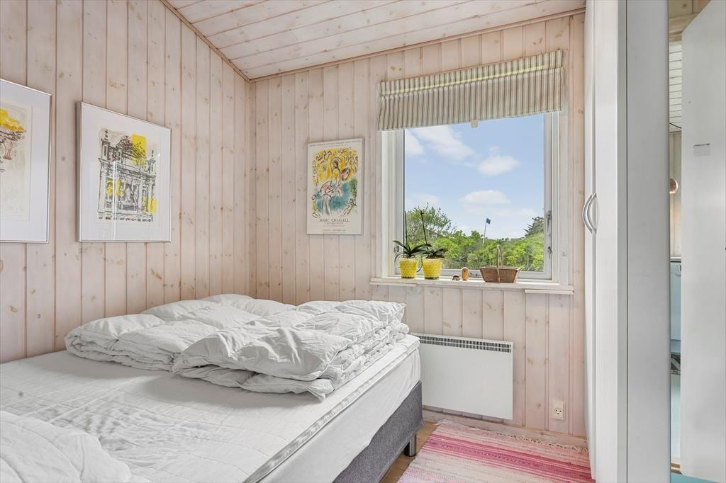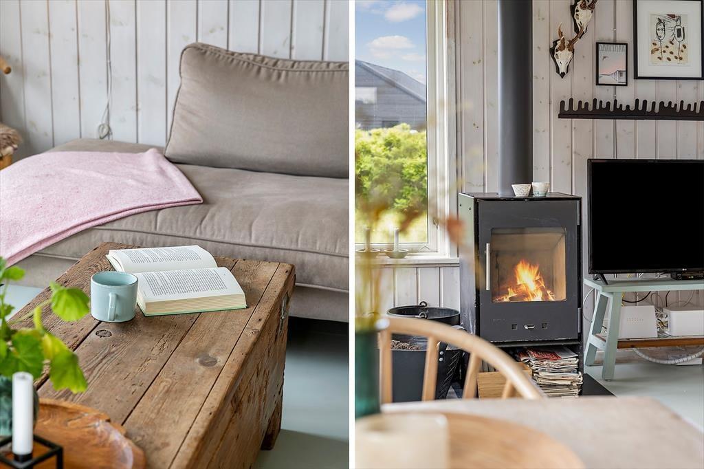 De lyse trævægge, det pæne møblement og den hyggespredende brændeovn er alt sammen med til at give huset en rar atmosfære, så I hurtigt kan føle jer hjemme og mærke feriefreden sænke sig. Det øger også sommerhusromantikken, at I kan se lige ud på havens hybenbuske gennem stuevinduerne – der for øvrigt også sørger for et godt lysindfald i løbet af dagen. Et fladskærms-tv står lige ved sofaen, hvis I er i humør til en tilbagelænet filmaften, og I kan også samles ved spisebordet for at hyggesnakke og spille kort i timevis. I det åbne køkken er der opvaskemaskine, mikroovn og andre gode hvidevarer, der gør det nemt at trylle små og store feriemåltider frem. Et badeværelse med bruser og vaskesøjle ligger lige ved entréen, og når det er sengetid, har I tre gode soveværelser til rådighed.