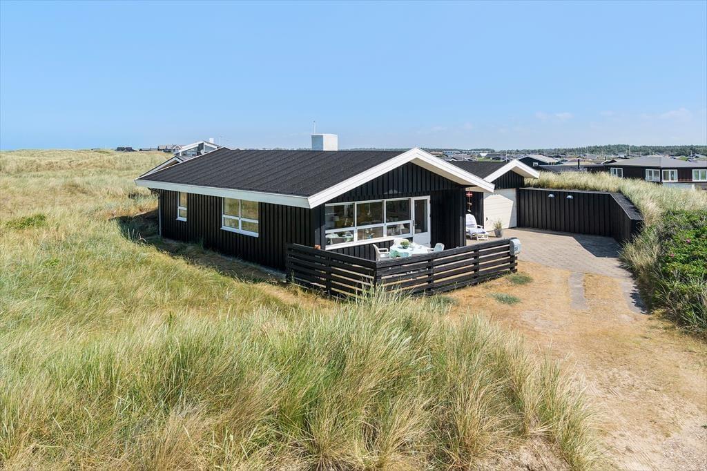 I får de bedste betingelser for at nyde strandlivet og havet, når I holder ferie på Harald Jensens Vej 58. Dette hyggelige sommerhus ligger nemlig i første klitrække, så det tager kun et øjeblik at gå ned til Løkkens karakteristiske badehuse og Vesterhavets blå bølger, og når I sidder på klitgrundens udsigtsbænk, har I udsigt til hele herligheden – inklusiv vestkystens spektakulære solnedgange.