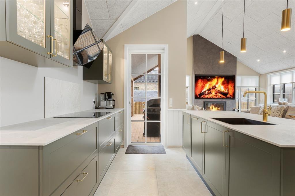 Sommerhus i Løkken Strand og By, Nordjylland, med plads til 14 voksne. Der er en hyggelig indretning med bl.a. brændeovn, og du finder desuden vaskemaskine, opvaskemaskine og tørretumbler i boligen.