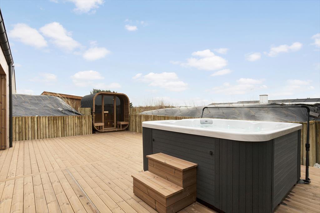 Lækkert sommerhus i Løkken med indendørs pool, spabad og moderne faciliteter nær strand og by.
