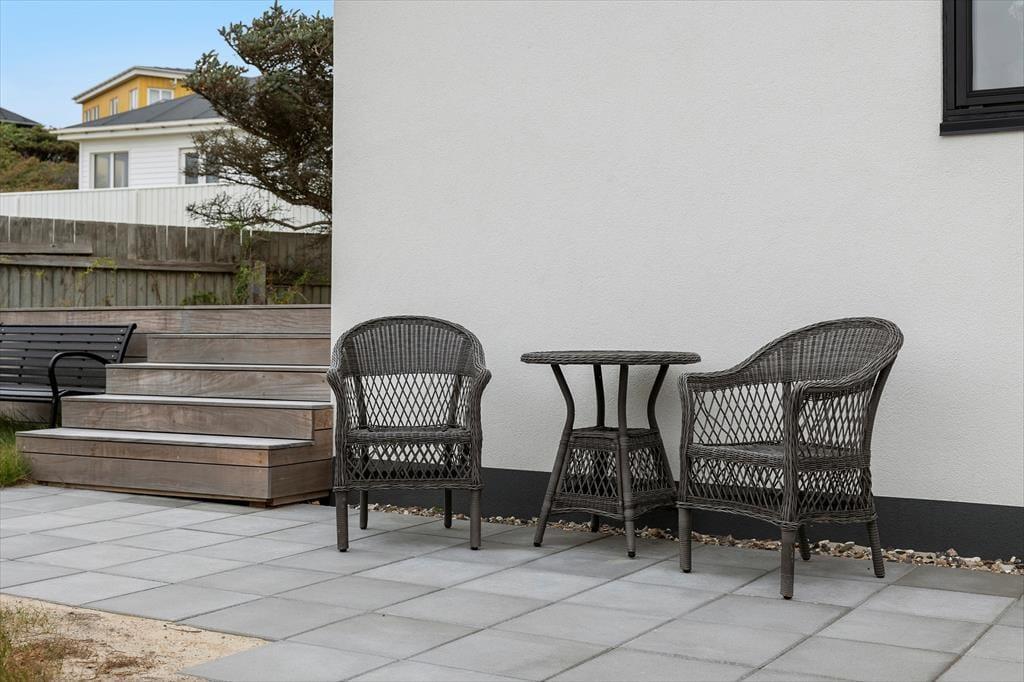 Sommerhuset indbyder også til at trække ud i det fri. Terrasserne giver dig mulighed for at nyde solen fra morgen til aften, og du kan altid finde en hyggelig krog, hvor du kan slå dig ned med en god bog eller en kop kaffe. Her kan du høre fuglene synge, mens du mærker den friske havluft brede sig, eller du kan samle familien til grillhygge, når aftenen falder på. Beliggenheden i et roligt område gør det nemt at koble helt af, og samtidig er stranden kun en kort gåtur væk. Det betyder, at du hurtigt kan få sand mellem tæerne og mærke Vesterhavets brusende bølger – en oplevelse, der hører sommerhuslivet til.