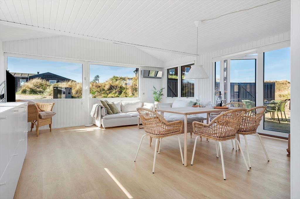 Når du træder indenfor i sommerhuset, bliver du mødt af en lys og stilfuld indretning, der er både smagfuld og moderne. Hver eneste detalje er nøje udvalgt under den omfattende renovering, der fandt sted i 2025. De store vinduer i opholdsrummet skaber et naturligt lysindfald, som giver en behagelig atmosfære, mens du slapper af med din familie eller venner. Den åbne planløsning mellem køkken og stue giver mulighed for at samles, uanset om du er i gang med at tilberede et måltid eller nyder samtalen. Her kan du tage en pause fra hverdagen og lade roen sænke sig. Sommerhuset er perfekt til at skabe de hyggelige ferieminder, der holder længe.