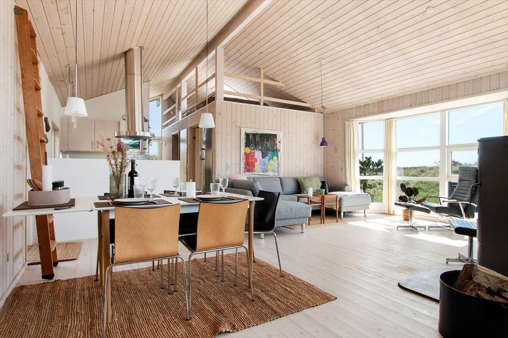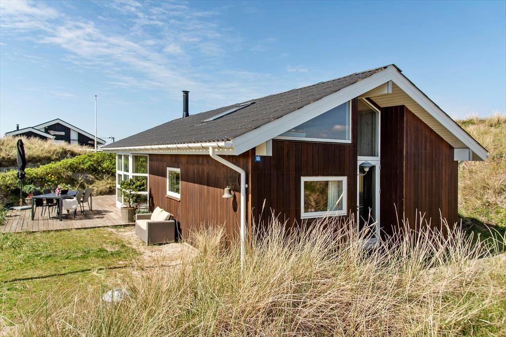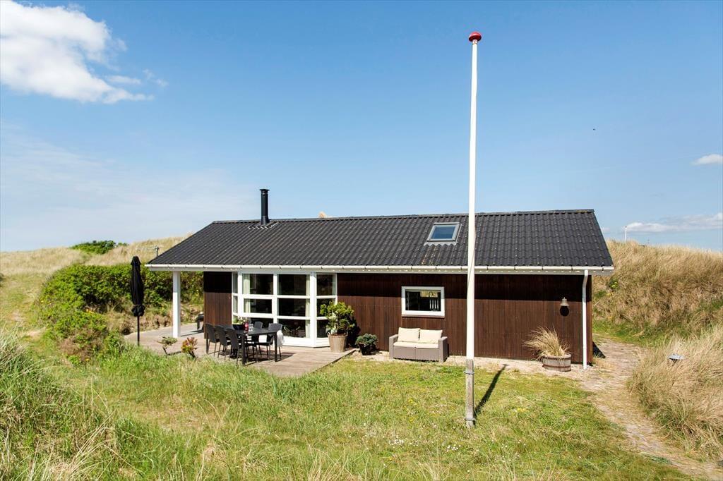 Det klassiske træhus ligger lige ud til klitterne, så du kan kigge ud på bølgende marehalm og hybenbuske, når du hygger dig inden døre. Især stuens store vinduespartier inviterer naturen og en generøs mængde sollys indenfor, så selvom du har mest lyst til at hygge dig inden døre med en god bog eller et familievenligt brætspil, er det stadig til at mærke, at du er på ferie ved vestkysten. På klassisk sommerhusmanér er der brændeovn, hems og loft til kip, og en alkove giver plads til middagslure og avislæsning på langs, hvis ikke du ligefrem får lyst til at overnatte her i de hyggelige omgivelser. Der er nu også godt at sove på de to værelser, der ligger ved siden af hinanden og tæt på brusebadeværelset.
