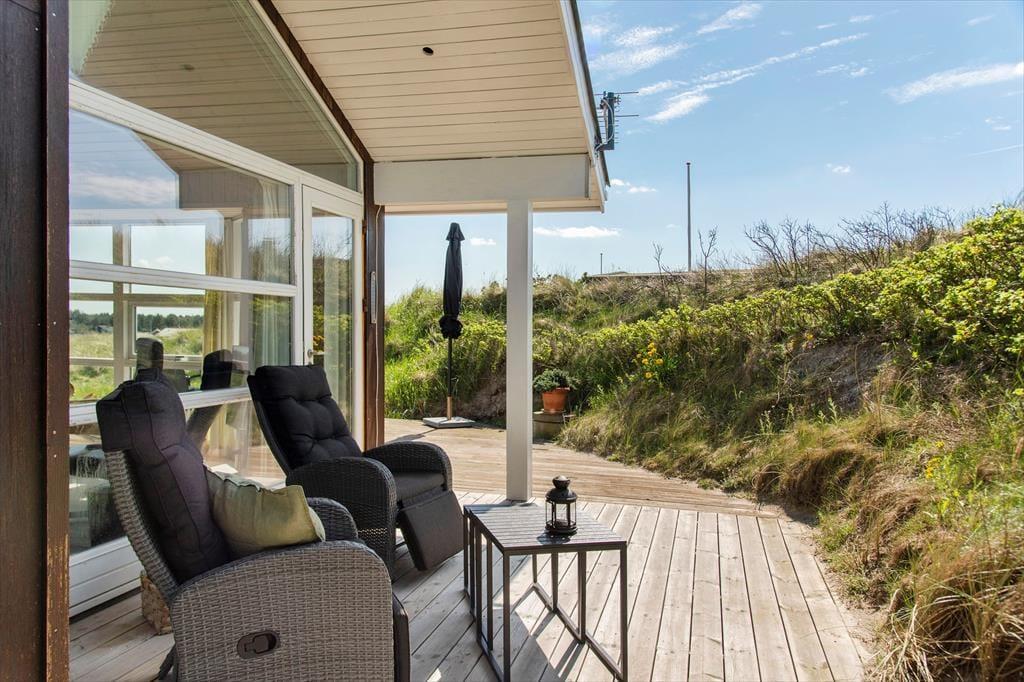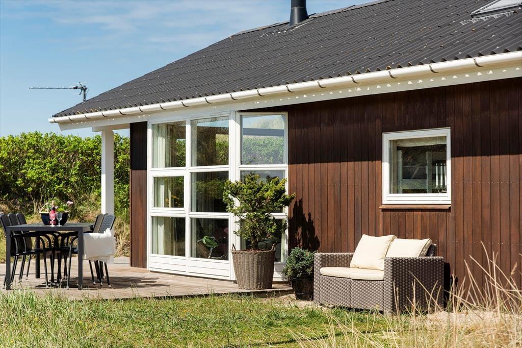 Hvis solen skinner, når du har brygget morgenkaffen i køkkenet, kan du passende tage en dampende kop med ud i det fri – for er det ikke noget med, at feriens mad og drikke smager endnu bedre, når den indtages i frisk havluft og med duftende hybenroser lige i nærheden? Rundt om huset er der flere gode terrasseområder at vælge imellem, og flere af dem ligger godt i læ af klitterne, så det er nemt at finde en ugeneret opholdsplads at nyde livet på. Om aftenen gør gasgrillen det nemt at tilberede de sommerlige måltider udenfor, og hvis solnedgangen ser ud til at blive særligt flot, kan du hurtigt smutte op på den højeste klittop eller helt ned på stranden for at nyde udsigten derfra.