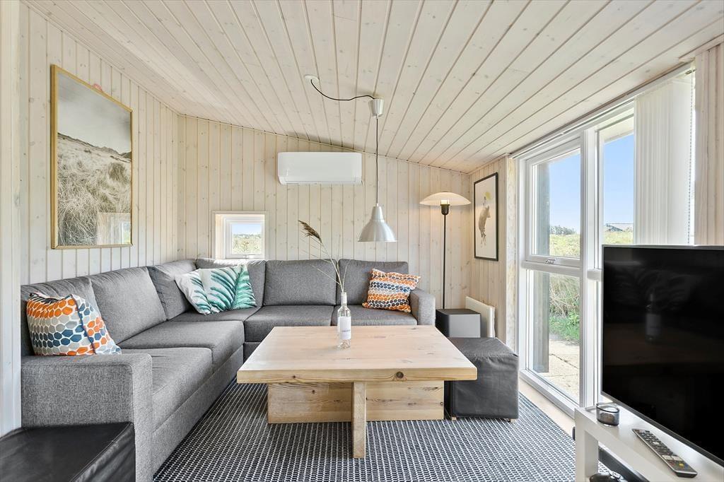 I bunden en lukket vej står dette fine sommerhus og byder dig velkommen til en skøn ferie. Selvom adressen er dejligt tilbagetrukket, har du nem adgang til både byens og strandens glæder, for der er ikke meget mere end 300 meter til Vesterhavet, og på en kort gåtur kan du være fremme ved Løkkens hyggelige centrum.