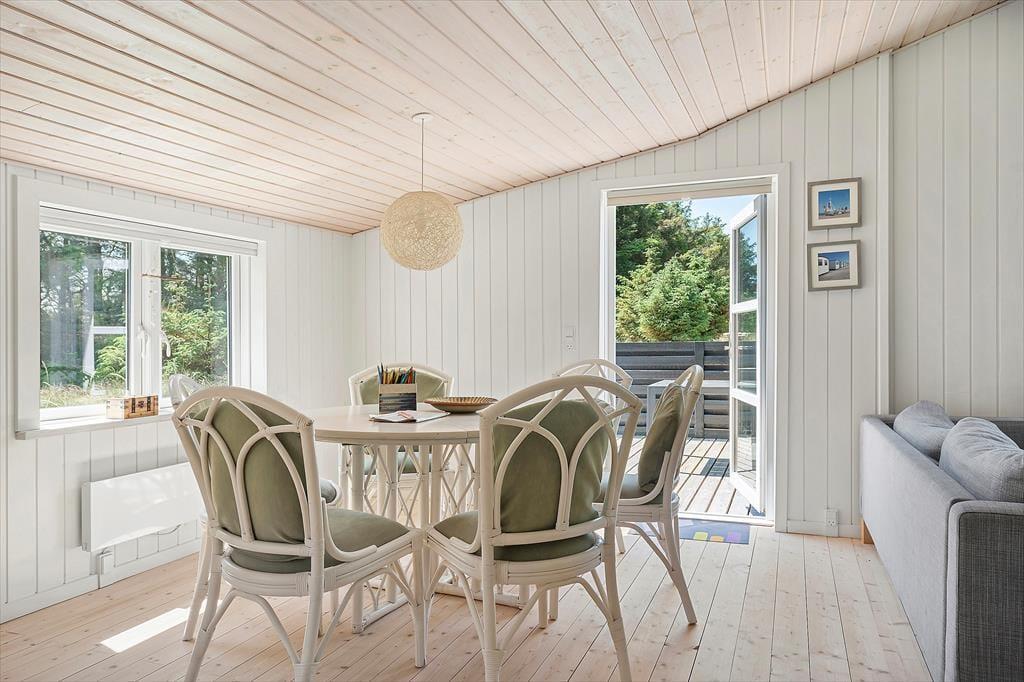 Efter den seneste renovering fremstår sommerhusets rum lyse og pæne – så du befinder dig i dejlige rammer, lige fra du slår øjnene op om morgenen på et af de to soveværelser. Brusebadet kan foregå på det rummelige badeværelse, og bagefter kan du gå i gang i det åbne køkken med at brygge kaffe eller måske ligefrem diske op med en fyldig brunch. Skal dagen ikke bruges ude i Løkken og omegn, men hjemme i huset, kan du tænde op i brændeovnen og tage strikketøjet og dine medbragte magasiner frem, og hvis fladskærms-tv’et skal sørge for underholdningen, kan du læne dig tilbage i sofaen og finde noget godt at streame.
