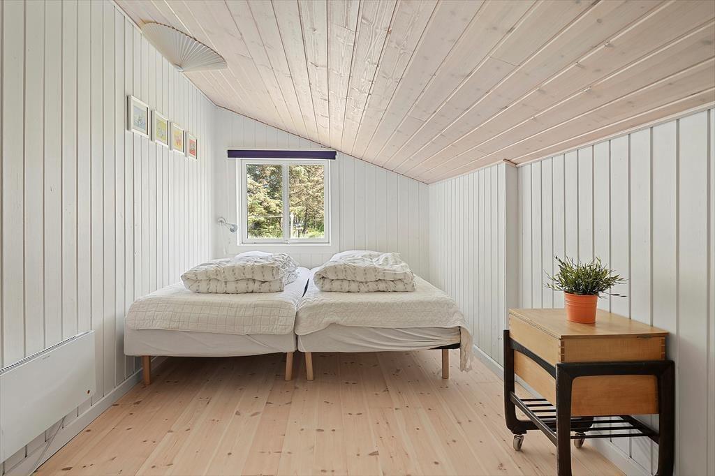 En dejlig træterrasse ligger i forlængelse af stuen, og den er udstyret med et hegn mod nord og vest, som skærmer af ud mod den lille vej og giver læ, hvis der kommer en brise fra havet. Har du børn med på ferie, vil de sikkert elske, at der er en trampolin på grunden – og de voksne vil sikkert også blive glade, for takket være den skulle der gerne være tid til at tage en ekstra kop kaffe i solen, mens ungerne brænder energi af. Naturgrunden er stor, så her er der god plads til at lege, også med hunden, hvis du har medbragt sådan én. Og hele familien, inklusiv de firbenede medlemmer, vil sikkert nyde freden og roen her i bunden af den lukkede vej.