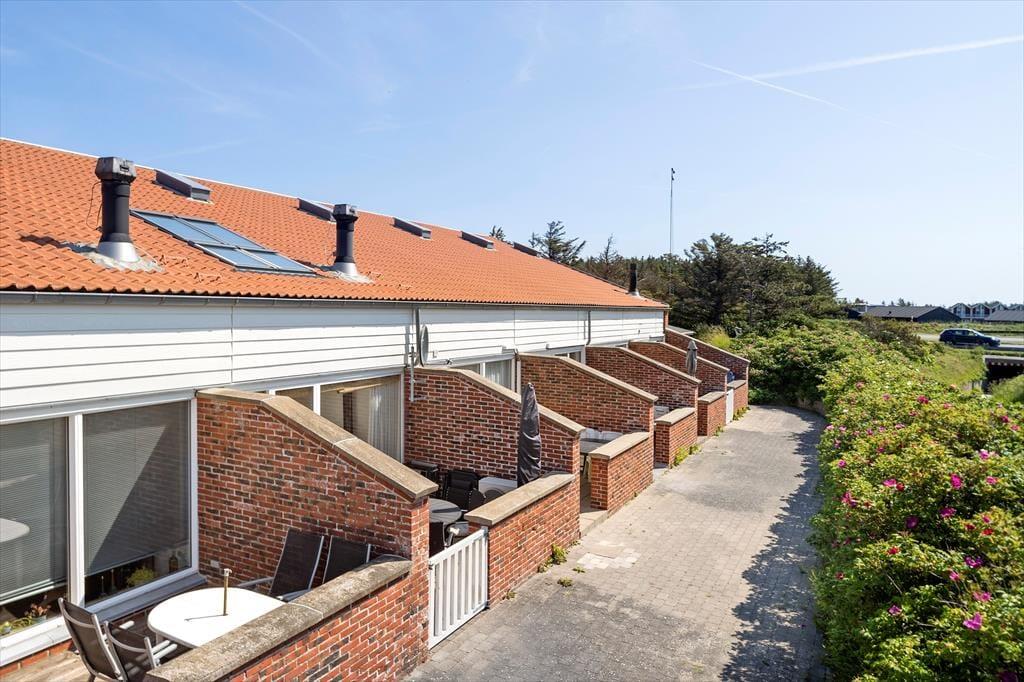 Fra stuen har du direkte adgang til en sydvendt terrasse, som hurtigt kan blive din foretrukne opholdsplads, når vejret er lunt og sommerligt. Her kan du ikke bare nyde solen i fulde drag, men også duften af hybenroser fra hækken, der breder sig få meter væk. Husets hoveddør ligger ind mod fællesgården, der byder på grønne plæner og flisebelagte arealer med bord-bænke-sæt. Det allerbedste er nu den fælles overdækkede swimmingpool, som du frit kan benytte, når du trænger til at bevæge kroppen eller bare vil flyde i det klare vand. Bemærk, at poolen er uopvarmet, og den er til rådighed fra omkring påske til omkring uge 42.