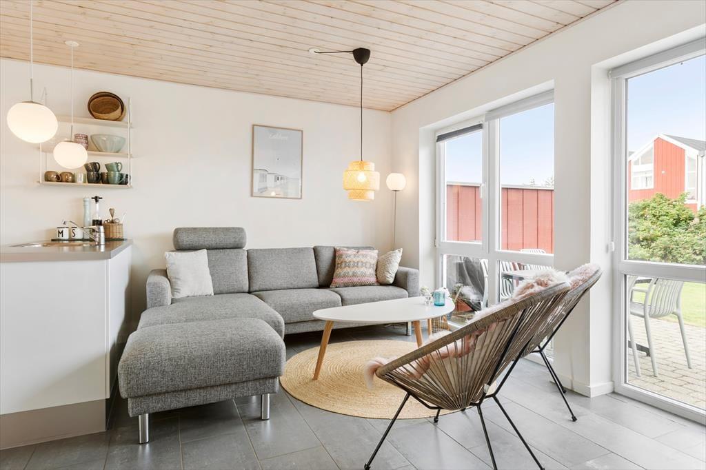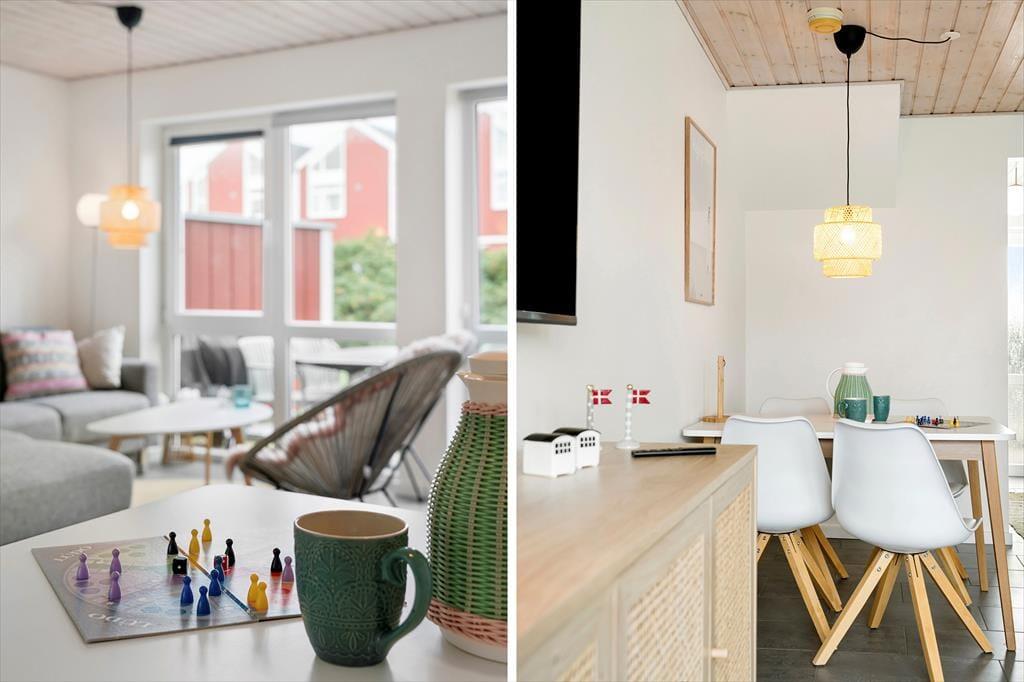 Når du træder ind i sommerhuset på Hornfisken 36, bliver du mødt af en lys og åben atmosfære. Huset er indrettet med et flot, moderne køkken og en hyggelig stue, som indbyder til både afslapning og samvær. De store vinduer sørger for et skønt lysindfald i stuen, og herfra har du adgang til en skøn terrasse, hvor du kan nyde udsigten til den omkringliggende natur. Sommerhuset har flere gode, rummelige værelser – det ene med en udsigt til golfbanen, hvilket gør det oplagt for golfentusiaster at tage en runde på den nærliggende Pay and Play bane. Det andet værelse er med direkte adgang til en hyggelig balkon, hvor man kan sidde og slappe af. Badeværelset er stilfuldt og praktisk indrettet med vaskemaskine og tørretumbler, så det er nemt at holde en komfortabel hverdag, mens du nyder din ferie.