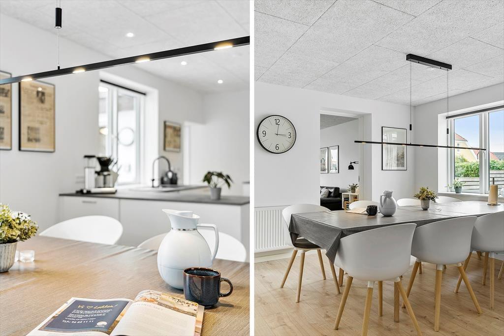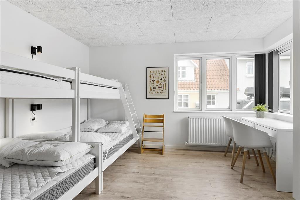 Når du træder indenfor i det renoverede sommerhus, mødes du af et skønt lysindfald fra store vinduer og en indretning, der indbyder til hygge og samvær. Stuen er lys og rummelig med en dejlig sofa, hvor hele familien kan slappe af sammen. De tre gode soveværelser byder på masser af plads til både små og store feriegæster, og der er hele to badeværelser, så I kan nyde ferien uden at skulle bekymre jer om logistikken. Det nyrenoverede køkken gør det let og sjovt at tilberede lækre måltider, og da det ligger i åben forbindelse med stuen, kan du stadig være en del af samtalen, mens maden simrer på komfuret. Her er alt, hvad du skal bruge for at føle dig hjemme, og de moderne faciliteter gør ferien endnu mere bekvem.