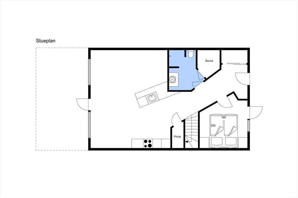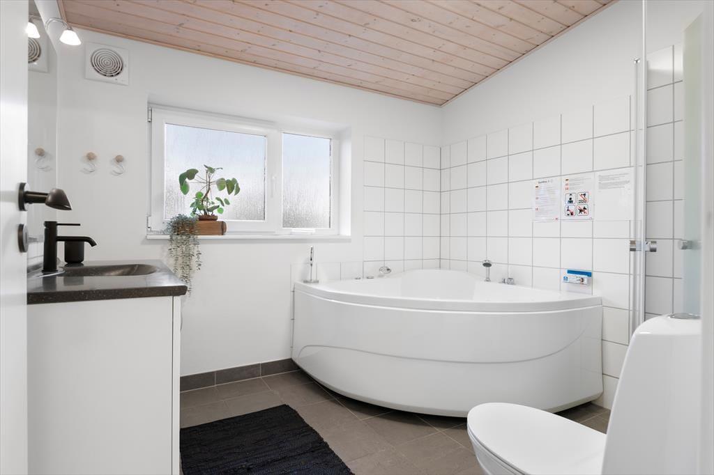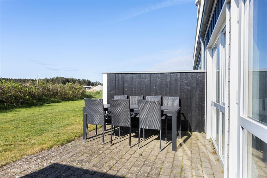 Udendørs byder sommerhuset på en stor terrasse, hvor du kan finde læ, sol eller skygge alt efter humør og tidspunkt på dagen. Start morgenen med en kop kaffe under åben himmel, slap af i liggestolen med din yndlingsbog, eller nyd duften af grillmad på sommeraftenerne. Grunden inviterer også til leg og boldspil for de yngste familiemedlemmer, mens de voksne kan nyde freden og den friske havluft. Fra huset er der kun en kort gåtur til den brede sandstrand, hvor børnene kan bygge sandslotte, og de voksne kan tage en dukkert i Vesterhavets bølger.