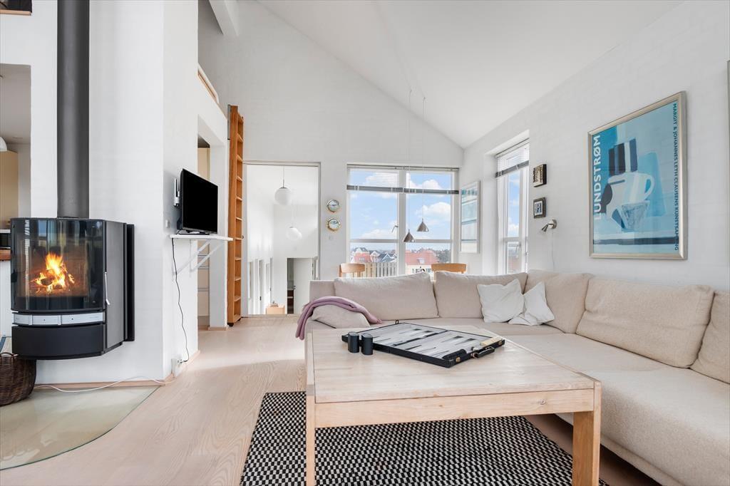 Indenfor mødes du af lyse, moderne rammer, hvor hele familien straks vil føle sig hjemme. Husets hjerte er den åbne forbindelse mellem køkken og stue, der indbyder til hyggeligt samvær – hvad enten det er over morgenkaffen eller en hjemmelavet middag. Gennem de store vinduer strømmer lyset ind, og du kan nyde udsigten til klitterne og havet, mens ilden knitrer i brændeovnen. Huset rummer tre gode soveværelser, der alle er indrettet med øje for både komfort og æstetik. Der er desuden et stilfuldt badeværelse og et ekstra badeværelse i kælderen, som gør det nemt og bekvemt for alle at finde ro i ferien.