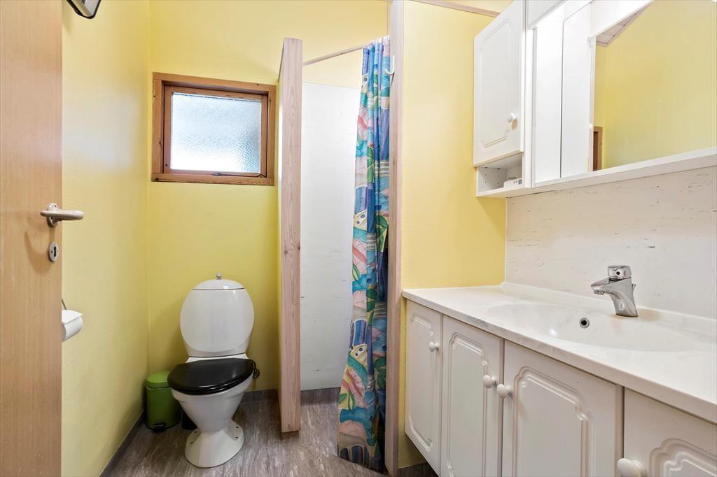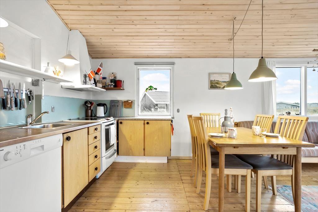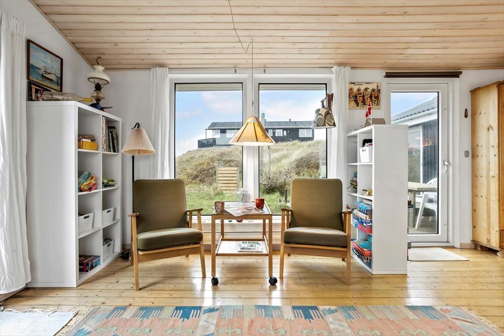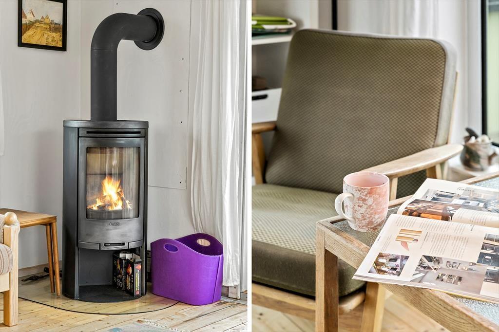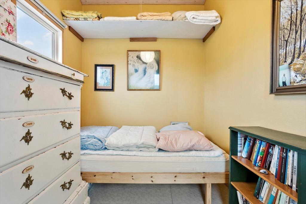 Indenfor i sommerhuset mødes du af en lys og indbydende atmosfære, hvor de store vinduespartier lader dagslyset strømme ind i rummene. Køkkenet er i åben forbindelse med stuen, hvilket skaber et socialt opholdsmiljø, hvor hele familien kan samles. Mens maden tilberedes, kan du nyde udsigten til de naturskønne omgivelser, og når aftenen falder på, indbyder brændeovnen i stuen til hyggelige stunder med varme og ro. Sommerhuset har tre gode soveværelser og et badeværelse, der tilsammen giver perfekte rammer til en afslappende ferie.