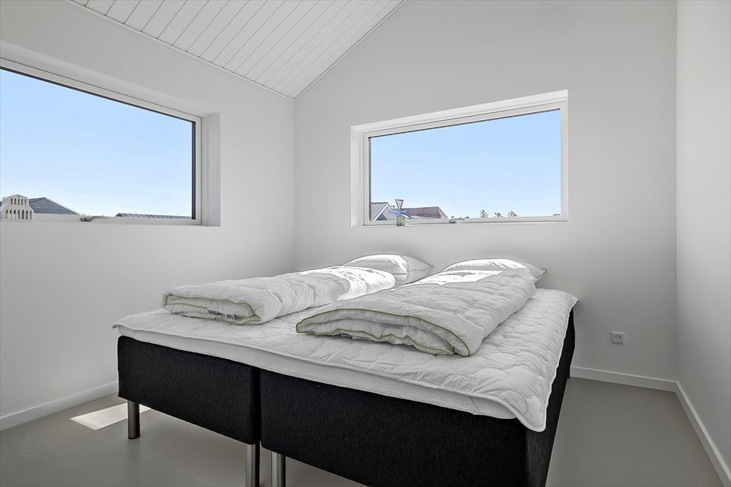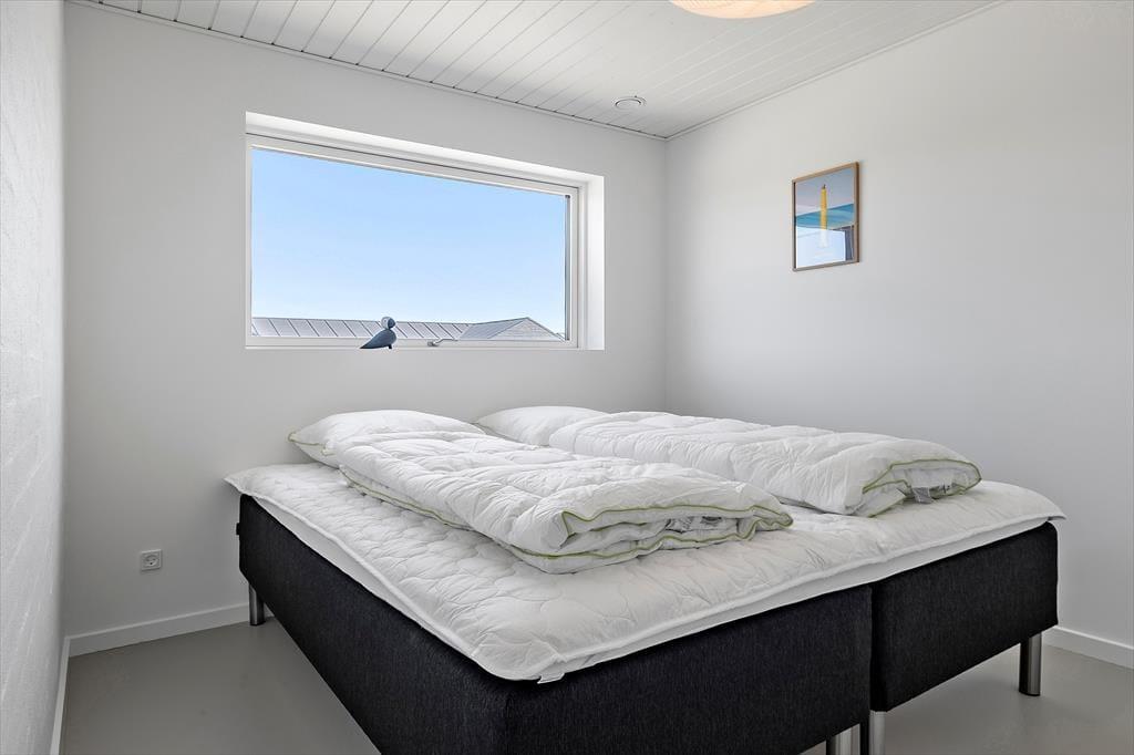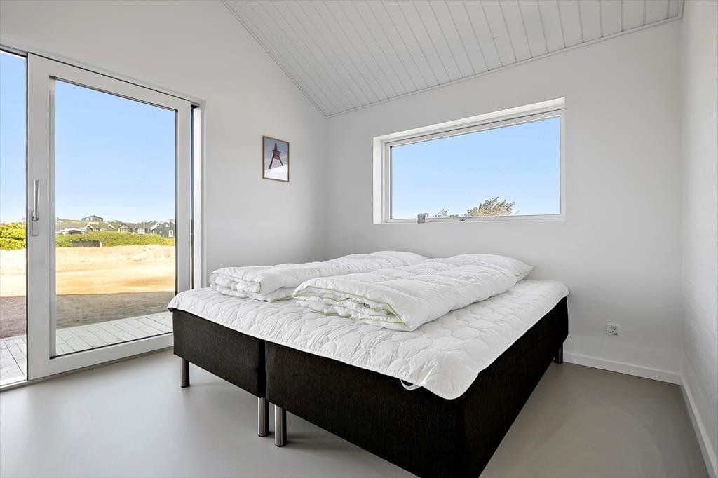 Når du træder ind i Kallehave Strand 2, mødes du af et lyst og indbydende interiør. Hele huset er bygget i høj kvalitet, og de store vinduespartier gør, at lyset strømmer ind i de åbne rum. Køkkenet er integreret med stuen, hvilket gør det muligt at være social og samtidig fordybe sig i madlavningen. Fra stuen kan du kigge ud over de naturskønne klitter, der ligger som et smukt bagtæppe til det moderne hjem. Med loft til kip og fire store soveværelser får du både plads og atmosfære. De to stilfulde badeværelser gør det nemt at være flere, og du får hurtigt følelsen af luksus og ro, når du træder ind i rummene.