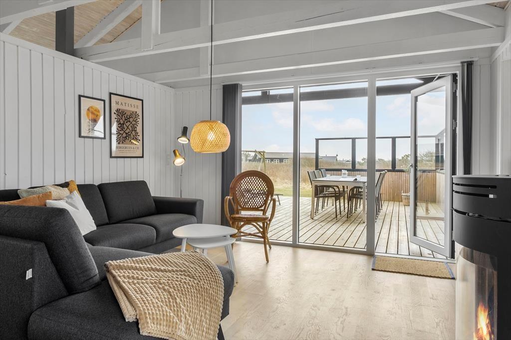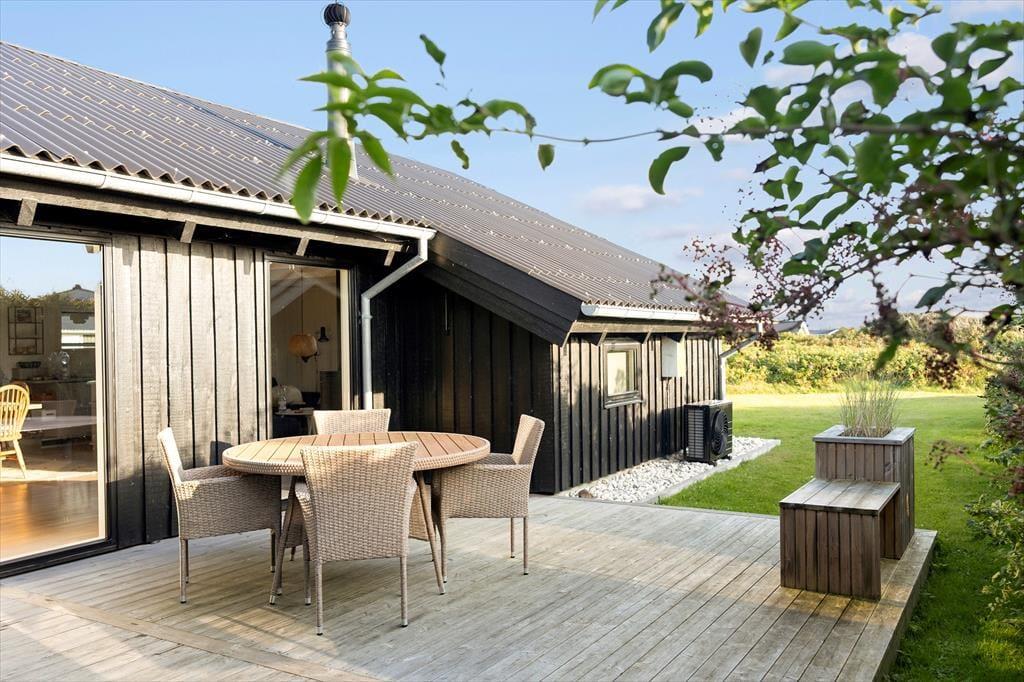 Når solen skinner, trækker livet naturligt ud på husets terrasse. Her kan du nyde morgenmaden i den friske havluft og lytte til fuglene, der synger i baggrunden. Måske bliver terrassen hurtigt base for spil, grin og grill – eller blot et sted at læne sig tilbage og lade tankerne flyde. Efter en dag ved stranden er det oplagt at skylle sand og salt af under den udendørs bruser – en lille luksus, der bare gør stranddagene endnu bedre. Grunden omkring huset giver god plads til både ro og leg, og du mærker hurtigt, hvordan tempoet daler i takt med, at solen bevæger sig hen over himlen. Her er det nemt at finde sit eget hjørne til fordybelse eller fællesskab – afhængigt af hvad dagen kalder på.
