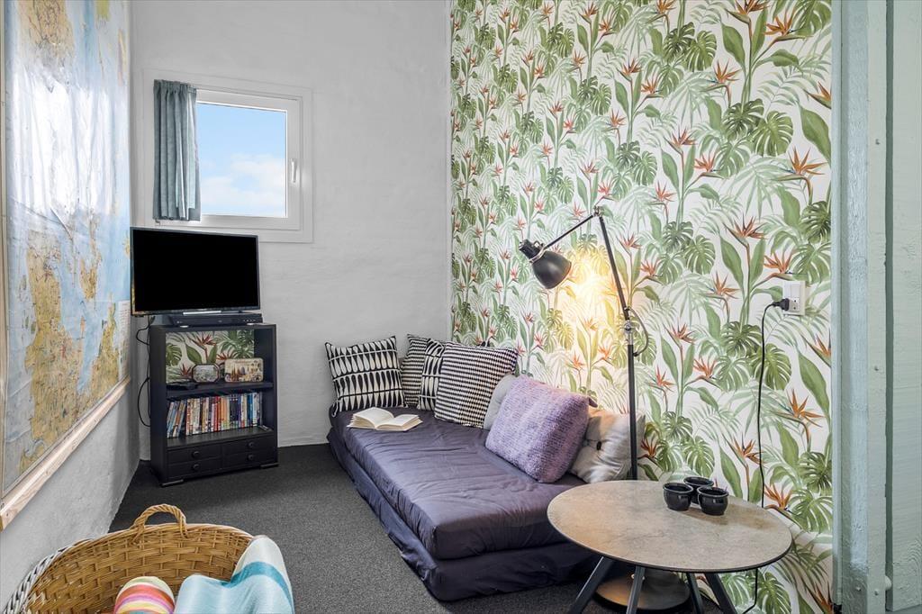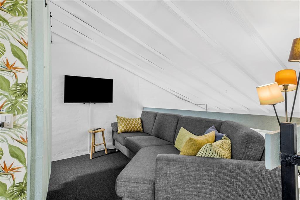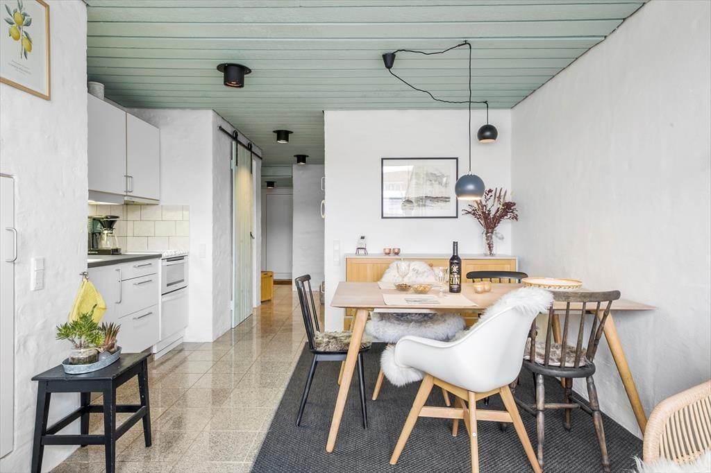 Når du træder indenfor i dette skønne hus, bliver du mødt af et lyst og åbent opholdsrum, der skaber en hyggelig og afslappet atmosfære. Køkkenet er åbent i forbindelse med den lyse stue, så det er nemt at være sammen, selv når der laves mad. Ferielejligheden byder på to dejlige værelser, som giver mulighed for en god nats søvn, og et badeværelse. Huset er perfekt indrettet til at kunne rumme både afslapning og fælles hygge.