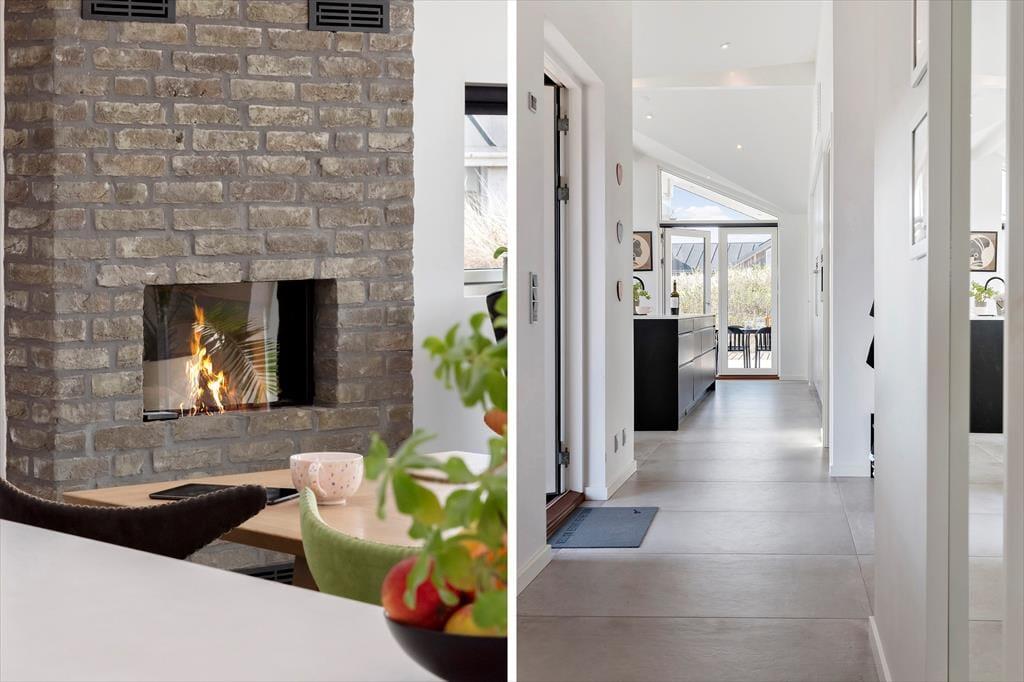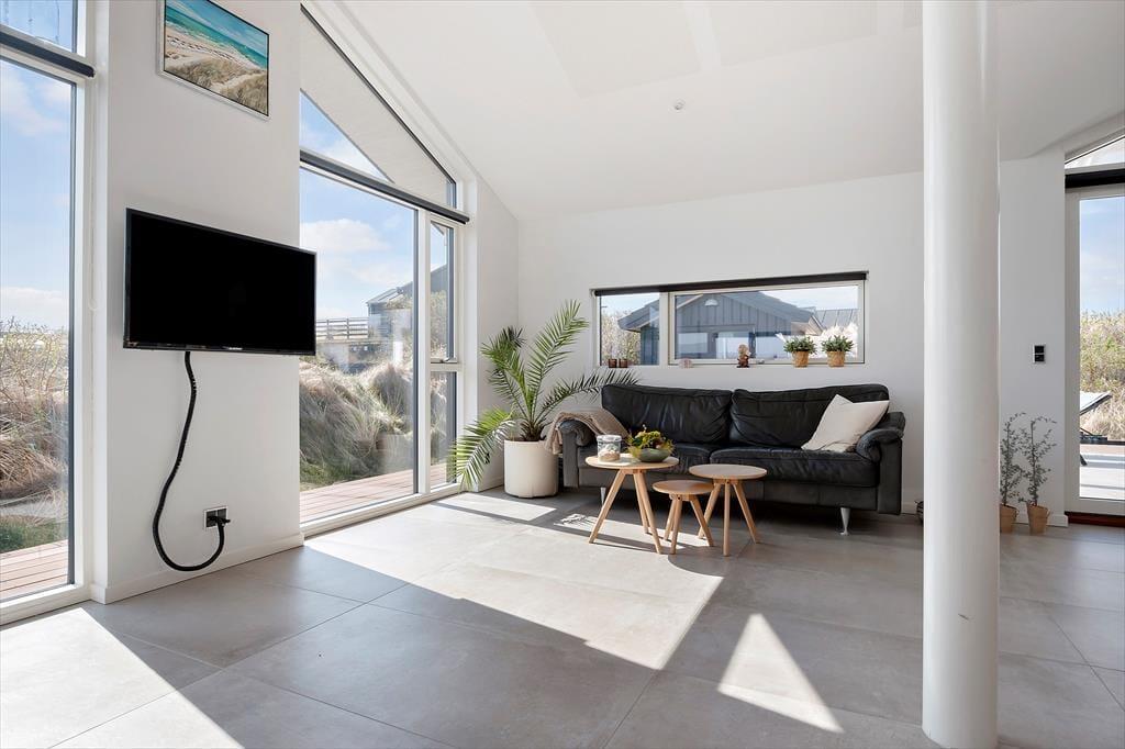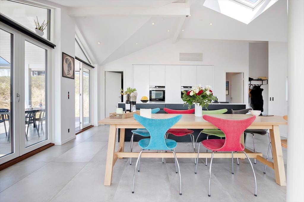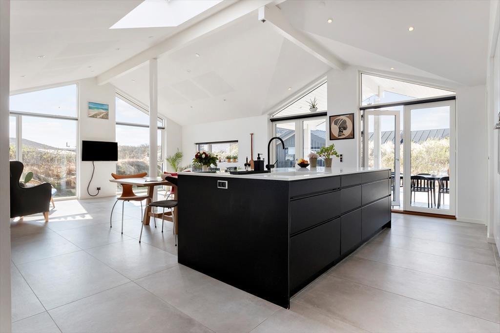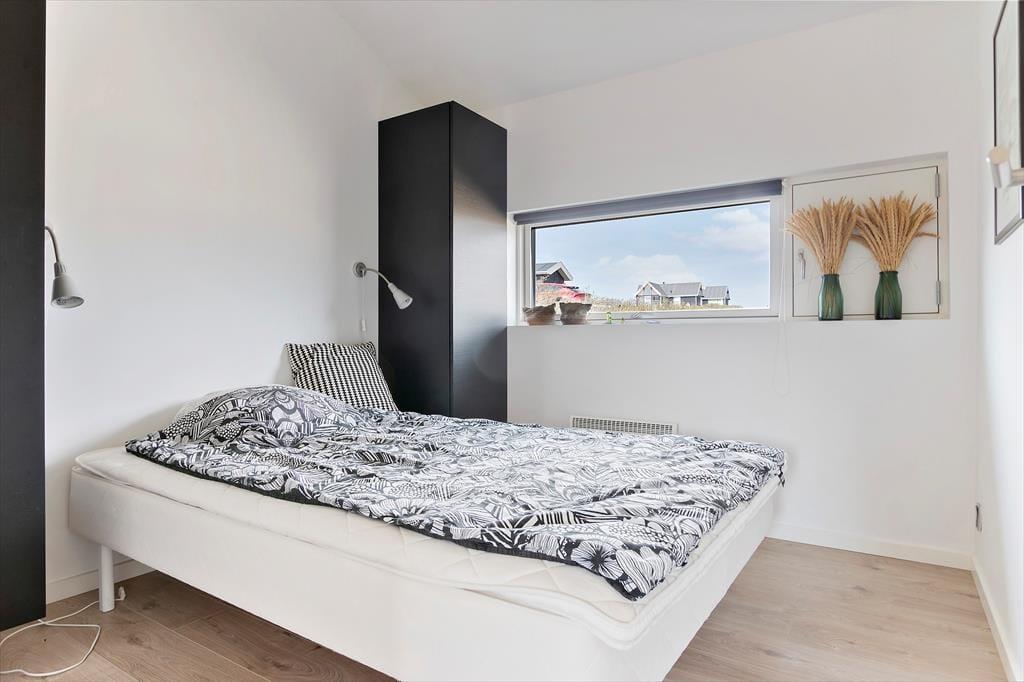 Når du træder ind i sommerhuset på Magnus Christensens Vej 107, bliver du mødt af et lyst og indbydende miljø, hvor nordisk enkelhed og sommerhusstemning går hånd i hånd. Indretningen er moderne og hyggelig med sans for de små detaljer, der skaber den helt rigtige feriestemning. I stuen sørger store vinduespartier for et skønt lysindfald og fornemmelsen af at være tæt på naturen – også selvom du befinder dig indenfor. Brændeovnen står klar til at sprede varme og knitrende hygge, når vinden rusker udenfor eller efter en lang dag ved stranden. Opholdsrummet rummer både køkken, spiseplads og sofaafdeling, så du og din familie nemt kan være sammen – uanset om der laves mad, leges brætspil eller læses godnathistorier. Det er et sted, hvor skuldrene sænkes, og tiden får lov til at gå i sit eget tempo.