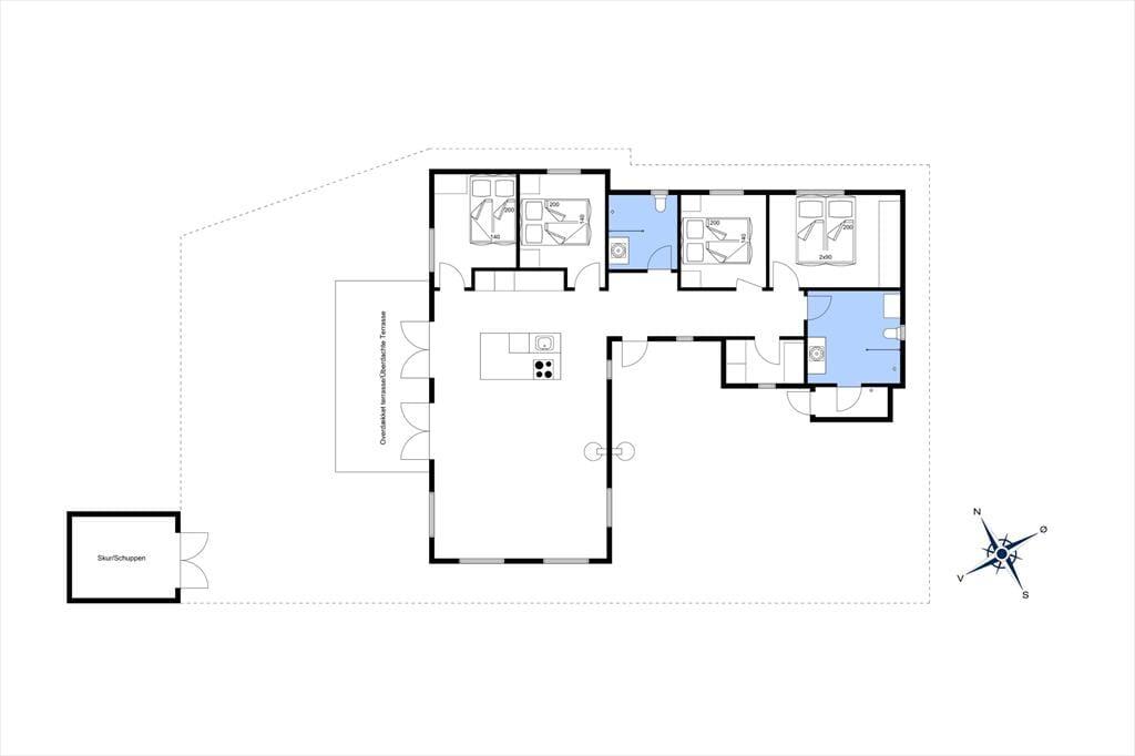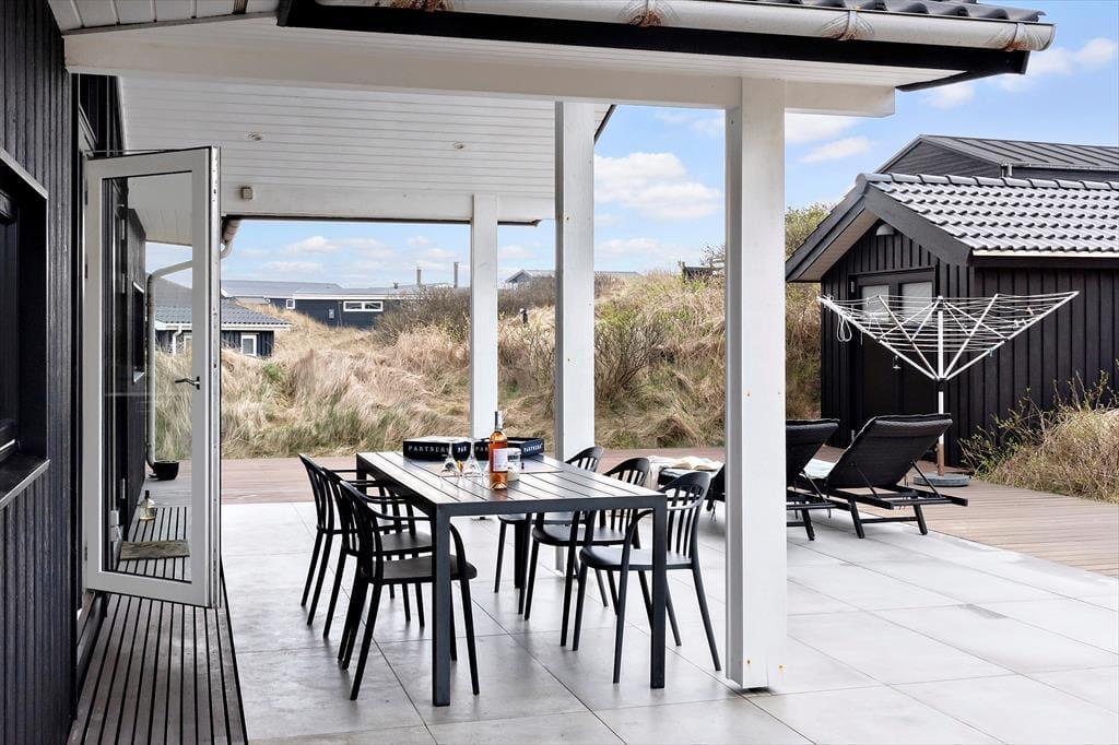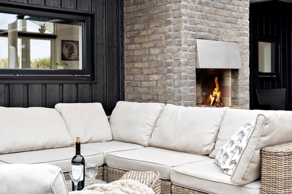 Når solen skinner, og feriestemningen for alvor har bidt sig fast, indbyder sommerhusets udeområder til masser af afslapning under åben himmel. Her kan du nyde en stille morgenkaffe i havemøblerne, tage en forfriskende udebruser efter en tur i havet eller tænde op i den udendørs pejs, når aftenen falder på og inviterer til snobrød og lange samtaler under stjernerne. Uderummet er indrettet, så både store og små kan finde ro og hygge – uanset om det er med en god bog i en liggestol eller boldspil på græsset. Det er nemt at forestille sig en sommeraften, hvor duften af grill blander sig med lyden af bølger og latter fra børn, der ikke helt vil give slip på dagen endnu. Her leves ferielivet i fuldt flor, og du vil hurtigt føle dig hjemme.