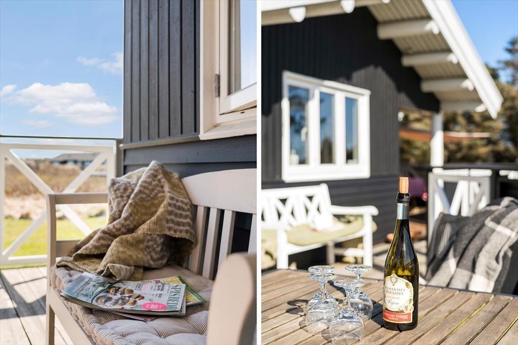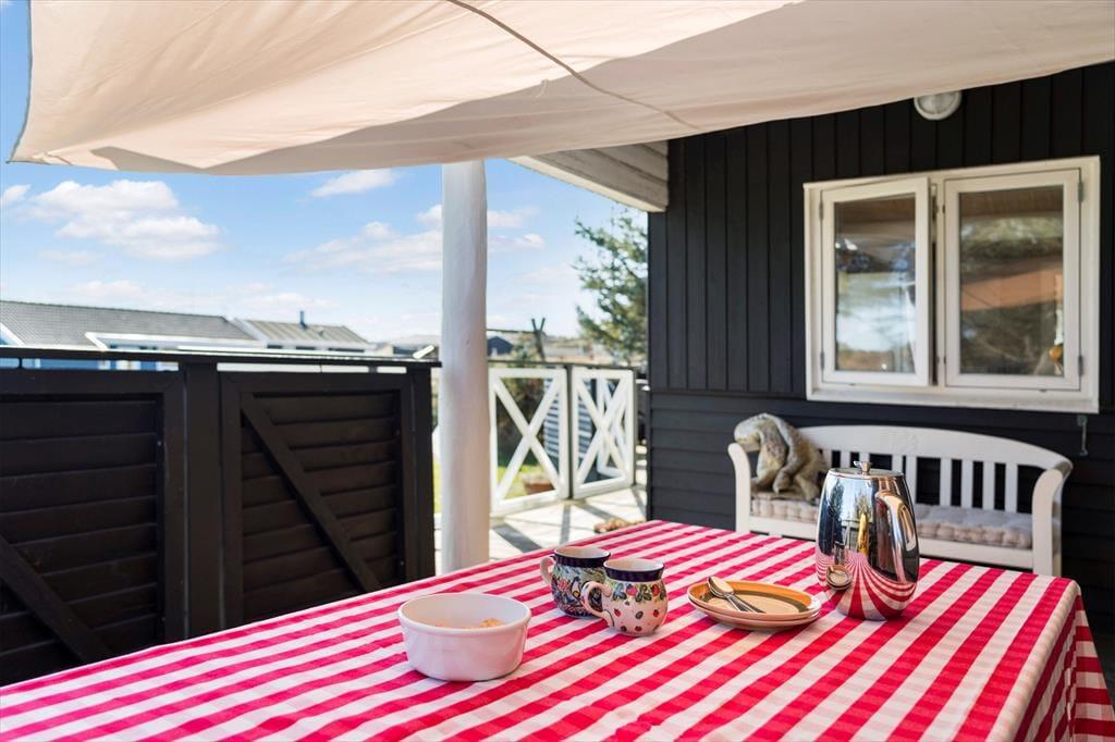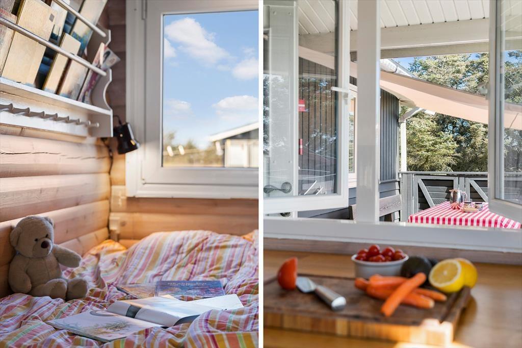 Udenfor fortsætter charmen. Sommerhuset er omgivet af en dejlig grund, hvor der er plads til både leg, afslapning og hyggelige stunder i solen. Terrassen indbyder til lange, lune morgener med friskbrygget kaffe og dagens første croissant, mens du lytter til fuglene i baghaven. Når eftermiddagen melder sig, kan liggestolen trækkes i læ, og her kan du nyde roen med en god bog og måske et køligt glas hvidvin i hånden. Til aften kan grillen tændes, og mens solen går ned i vest, samles familien til fællesskab og latter under åben himmel. Den friske havluft og nærheden til naturen giver ny energi og plads til nærvær.