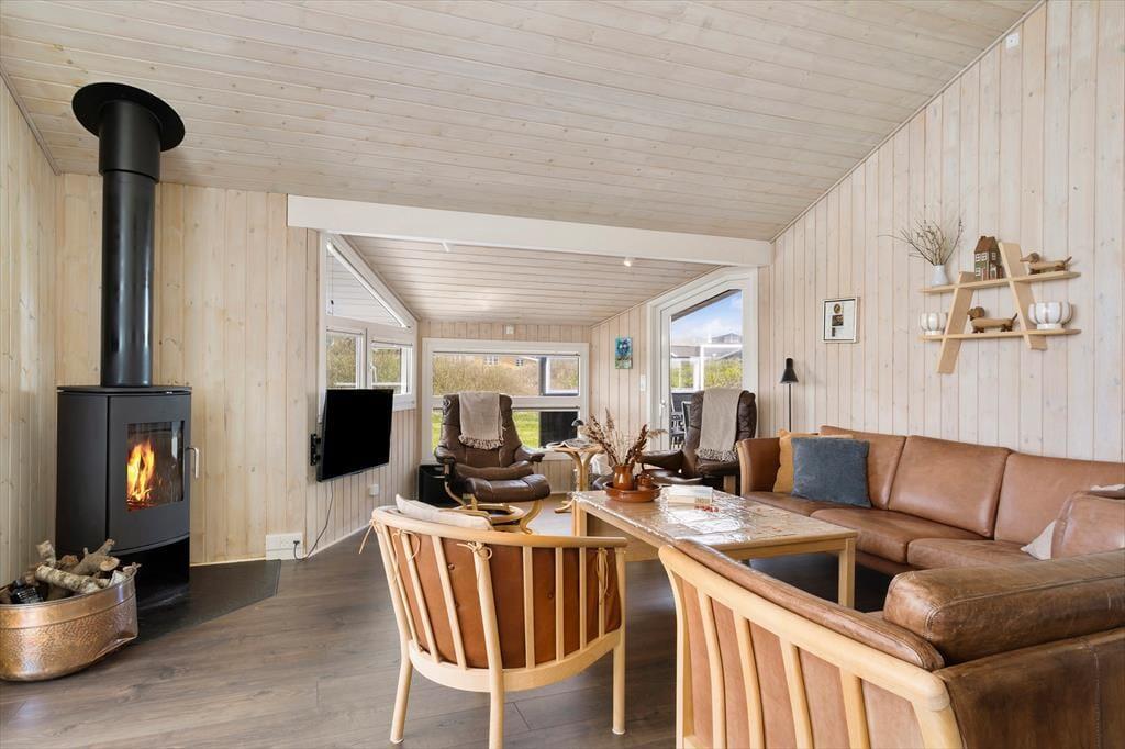 Når du træder ind ad døren til dette skønne sommerhus i Løkken, mødes du af en lys og indbydende atmosfære, hvor der er tænkt på både komfort og feriehygge. Huset er indrettet med fire gode soveværelser samt en hems, hvor børn og barnlige sjæle kan hygge sig med leg og små eventyr. I den skønne stue strømmer dagslyset ind gennem store vinduespartier og skaber en varm og rar stemning – perfekt til afslappende aftener foran brændeovnens knitren. Det pæne og veludstyrede køkken er i åben forbindelse med stuen, så samtalerne kan fortsætte, mens du fremtryller lækker mad med lokale råvarer. To badeværelser gør huset ideelt til både familier og vennepar, som ønsker lidt ekstra komfort på ferien. Alt i alt danner huset en skøn ramme om feriedage fulde af nærvær, afslapning og hyggelige stunder.