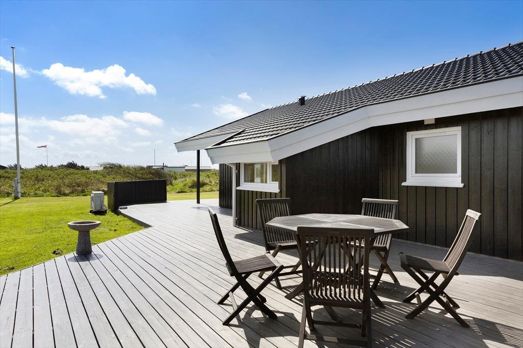Udelivet er helt i top på Oktobervej 15. Den store træterrasse, som omkranser sommerhuset, gør det muligt at følge solen fra morgenkaffen til aftenens sidste glas vin. Terrassen indbyder til lange, dovne dage med gode bøger, hyggelige måltider under åben himmel og masser af afslapning i liggestolen. På den store grund er der god plads til, at børnene kan løbe frit rundt, spille bold eller måske finde på små skattejagter i det grønne. Carporten sørger for, at bilen står i læ, så du nemt kan tage på udflugter i området. Med en kort spadseretur på blot 250 meter til stranden, er det oplagt at pakke strandtasken og tilbringe timer med at bygge sandslotte, bade i det klare hav eller bare lade sandet smyge sig mellem tæerne, mens Vesterhavets brusen fylder sanserne.